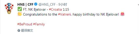 或许是意识到自己这一不厚道的举动,克罗地亚国家队官方账号,在赛后特意祝福别洛瓦尔110周年生日快乐,并表示这是值得纪念的一天,希望用这迟到的安慰,为这家刚刚度过110岁生日的俱乐部庆生。