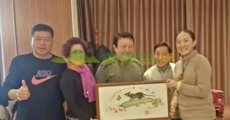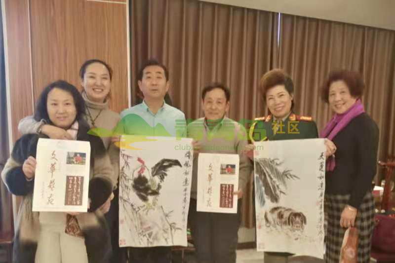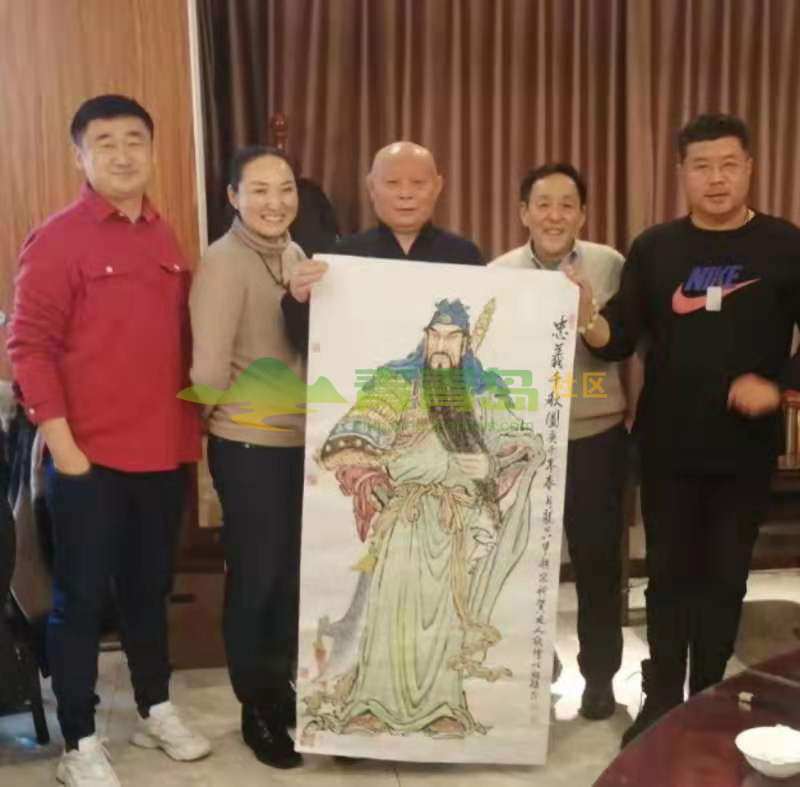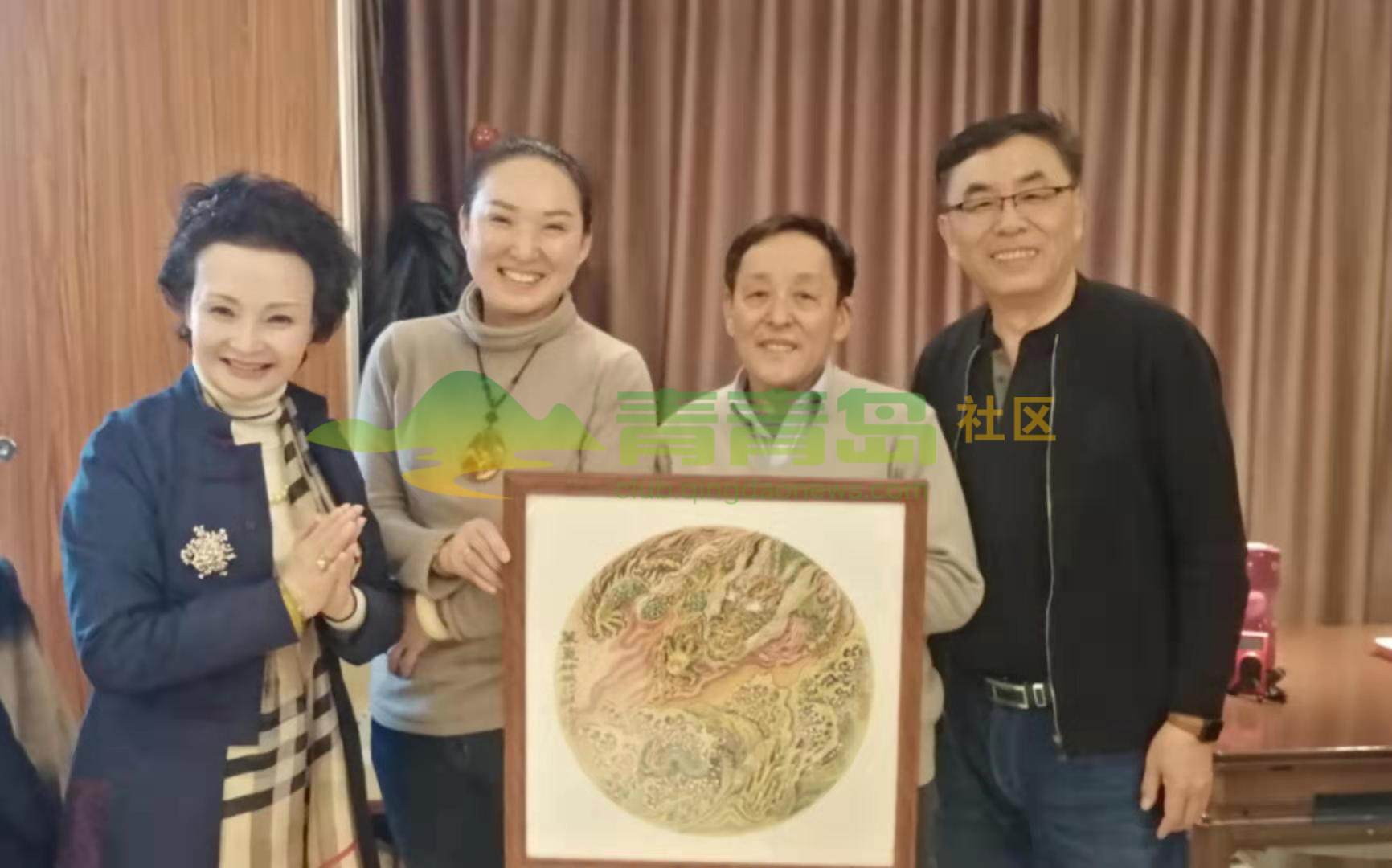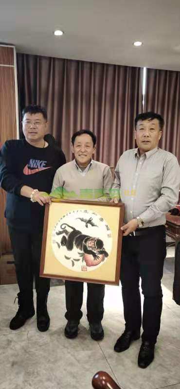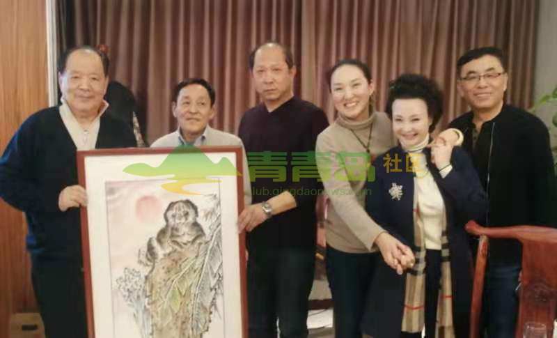 右二为:崔丽丽女士、右四:牟总;左一:魏鸿山董事长、左二:画家赵宗祁;右三:刘华院长