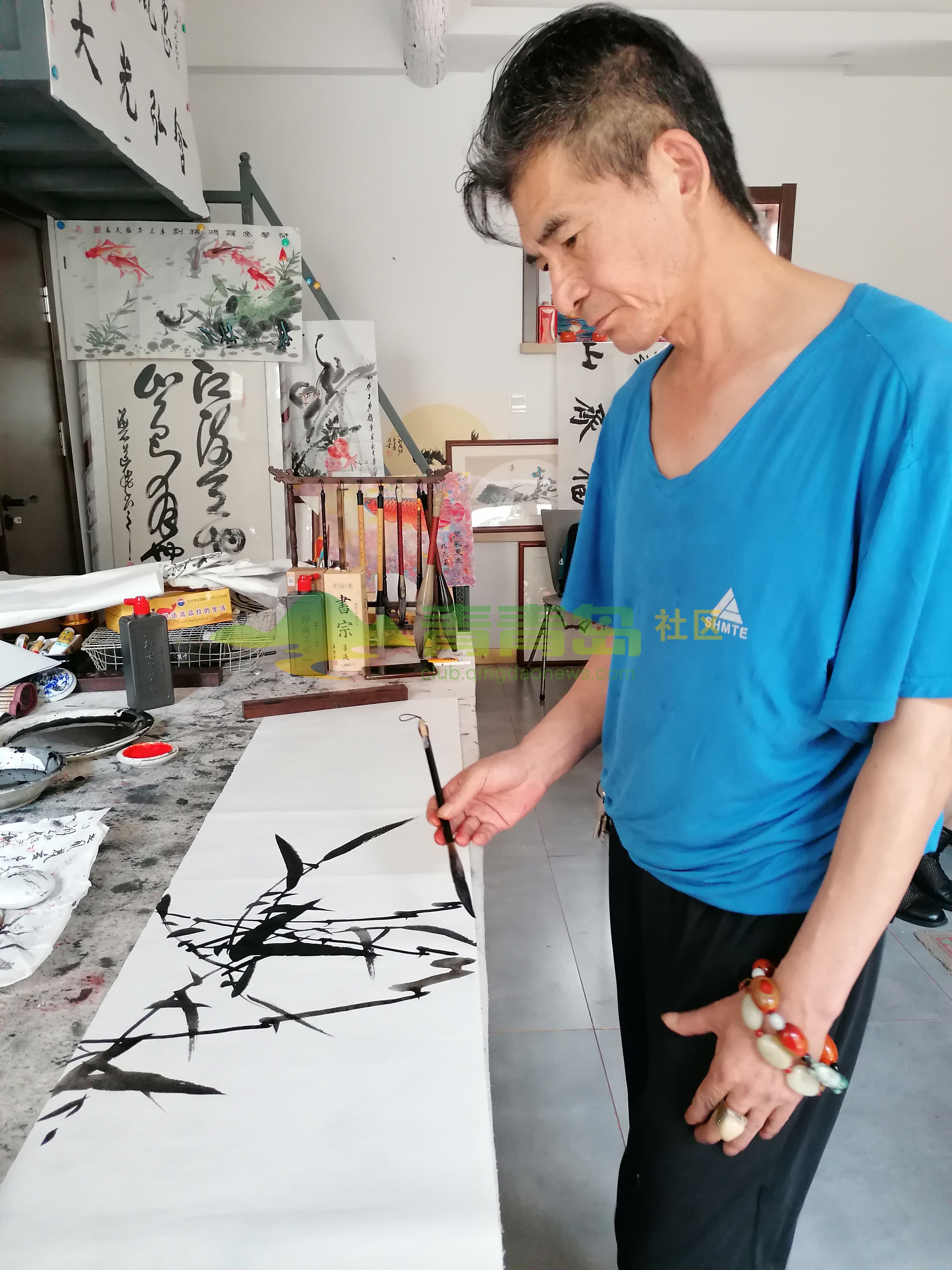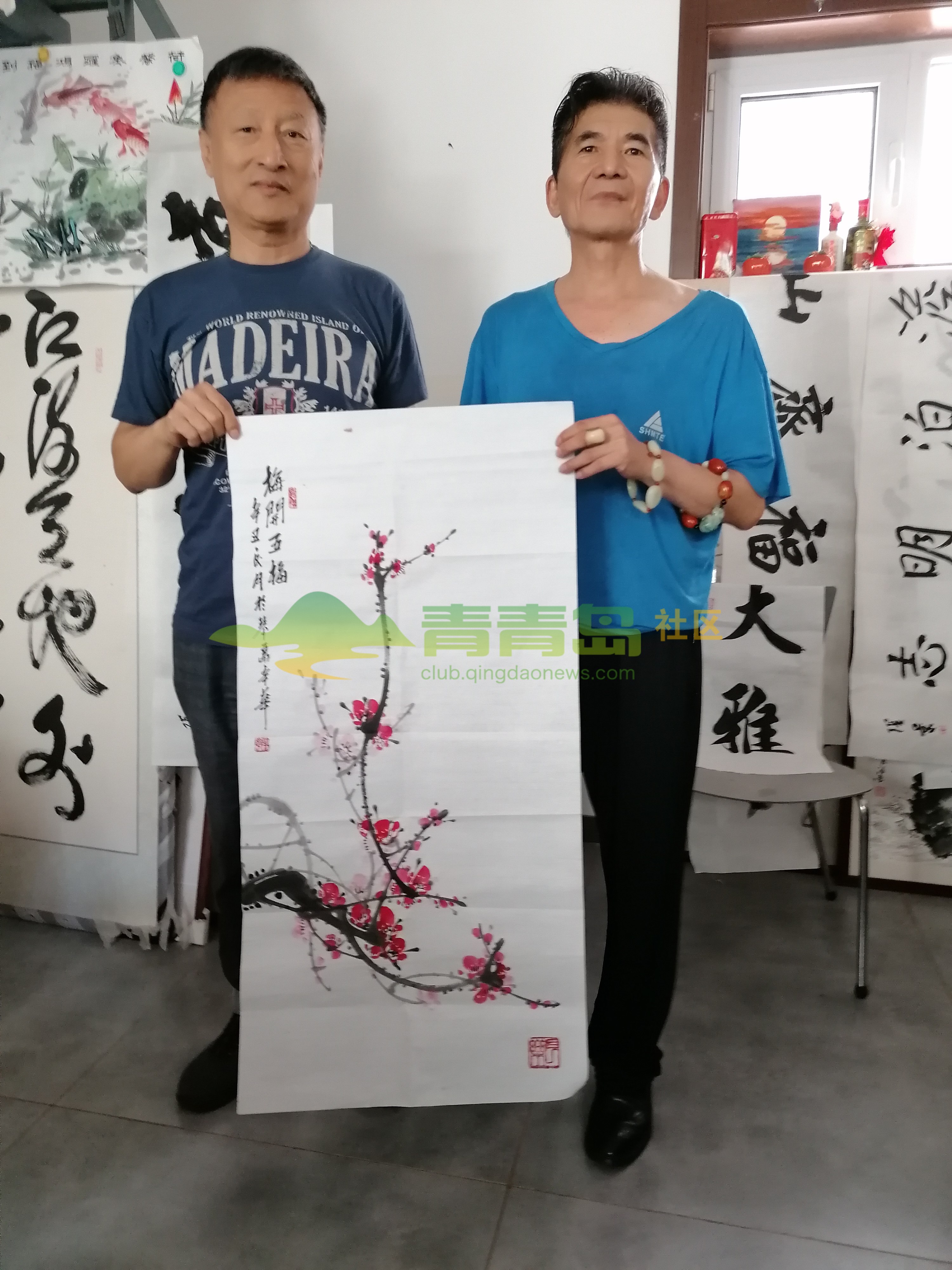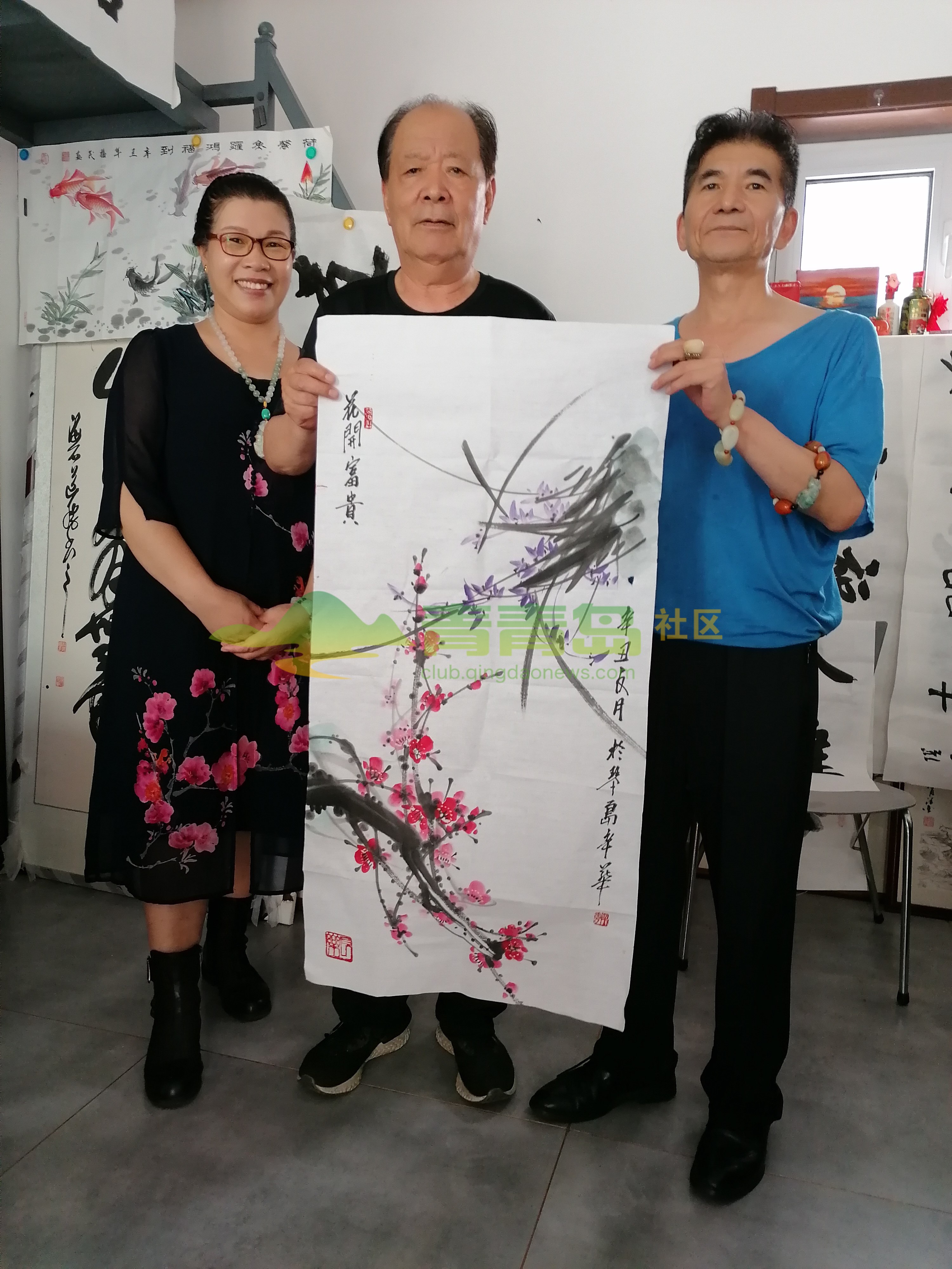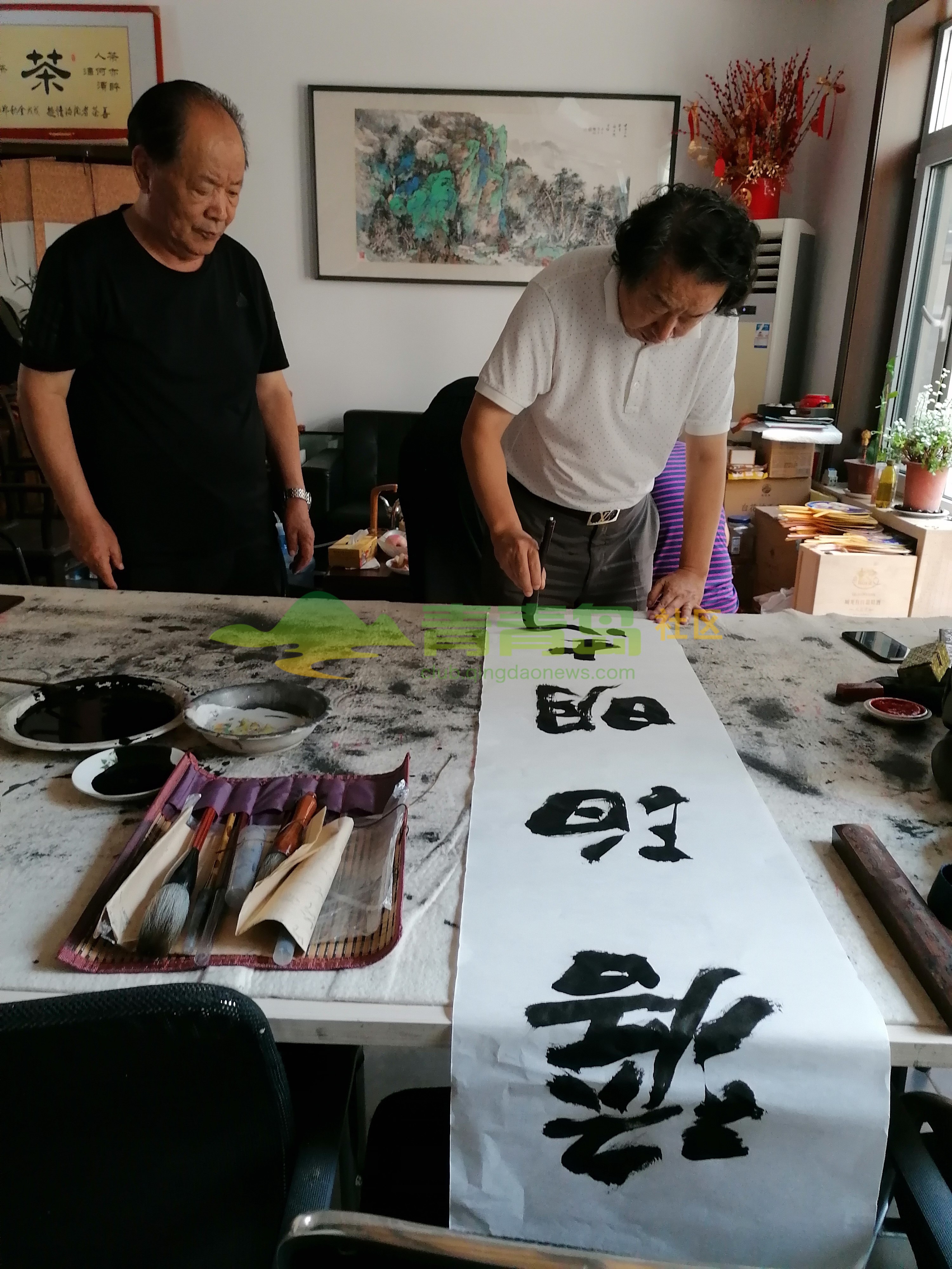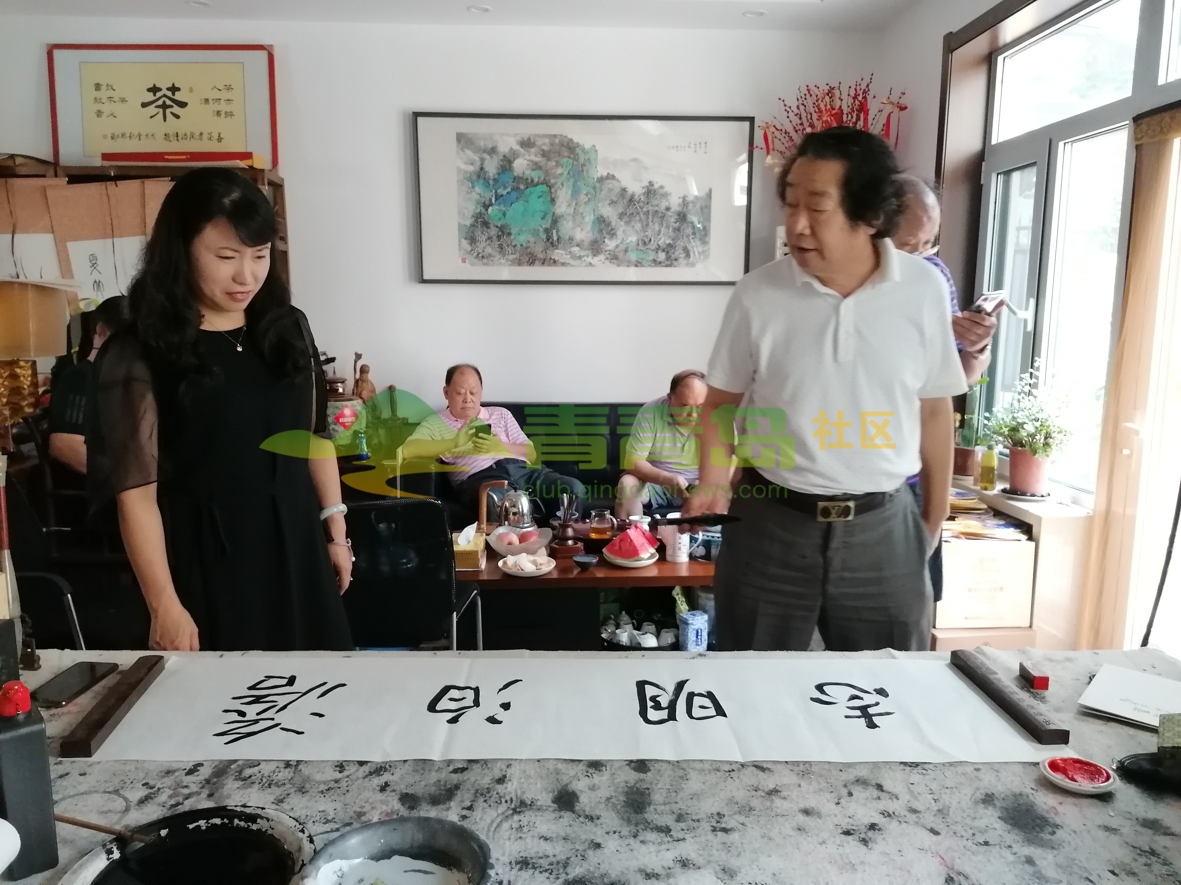 魏鸿山邀请张景、刘玉明、辛华举办书画笔会:青岛李岩摄影报道