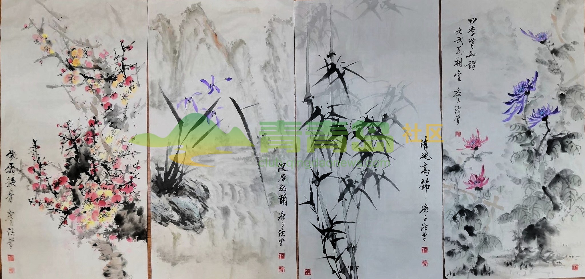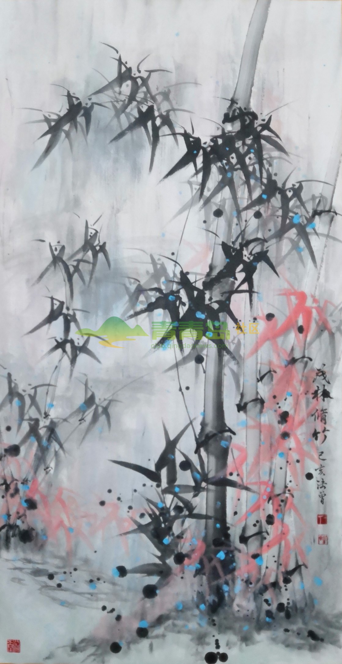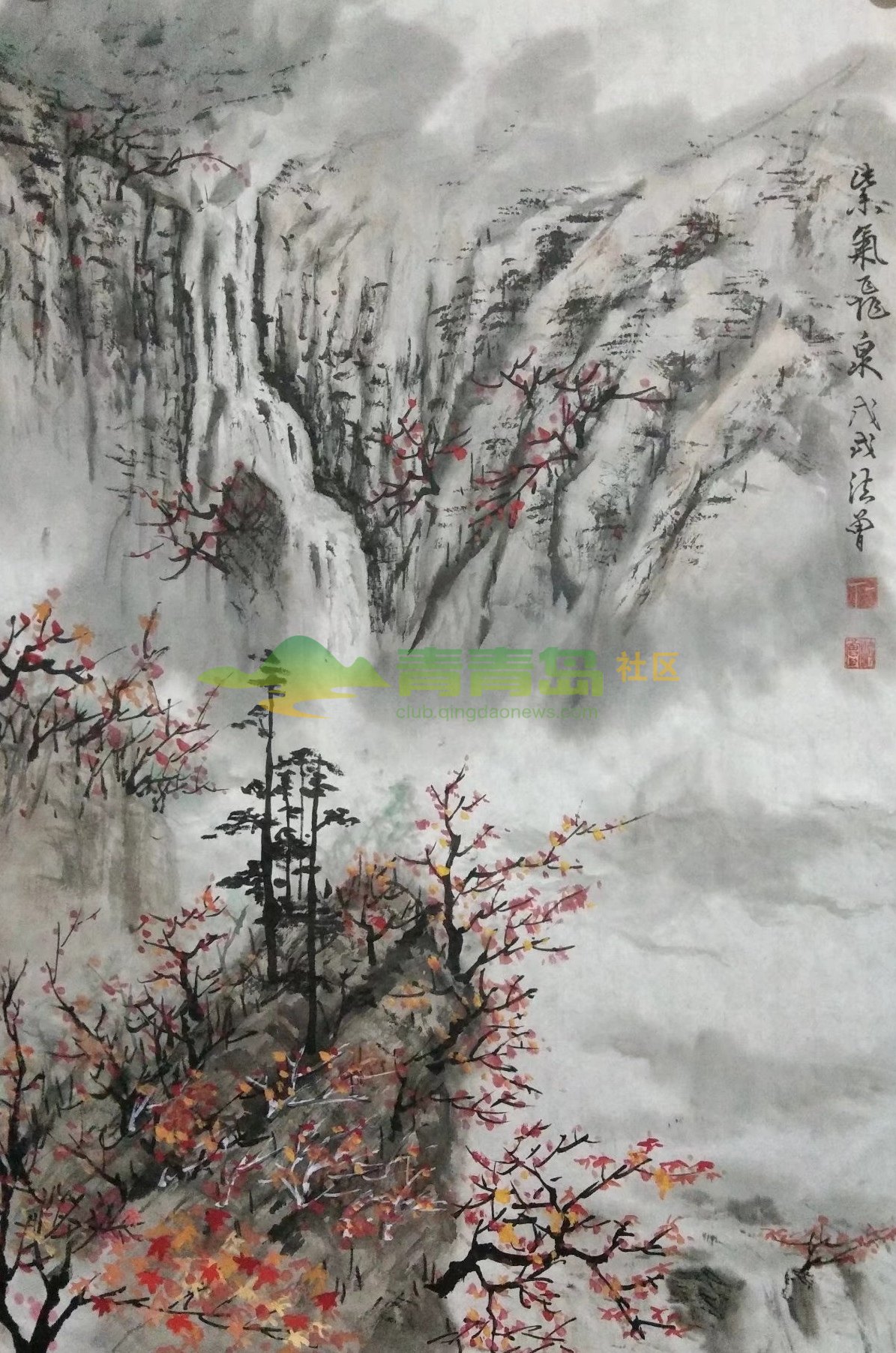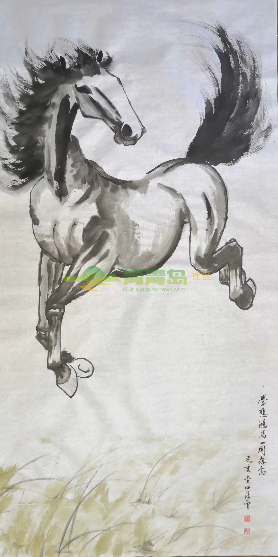 房世占先生微信头衔是“法曾堂玉雕·法曾·一丁”,绘画落款“法曾”,笔者不太知道深刻的含义。他出行,开车。几次见面做笔会,他总是和国画家金明晓先生在一起。都是即墨金口镇老乡。他身上总有一种“神气”,仿佛生活在别处——神仙居住的地方。他的玉雕作品没有见过,之前见的最多的是他画竹子,郑板桥的细竹,亭亭玉立,惟妙惟肖。最近,在王春林、于爱丽夫妻的“大明画廊”,看到了他画山水,着实吃了一惊,而且还画得有模有样,云蒸霞蔚,迷迷漫漫。这不,要了他的国画作品照片,发现他画国画还真是有一手。画山水,有些迷茫朦胧中,烟雾缭绕,群雁飞翔,山高水长,林密潭清......画翠竹,风中摇曳,窈窕瘦身弱而不倒,浓密有致,傍怪石,依幽兰,雨后初心不改,境由心生成长......画奔马,天马行空,独往独来,神态飞扬,姿态优美......画花鸟,清新亮丽,淡雅中不缺情趣,既有北方大山的粗狂,又有江南水乡的细腻入微......