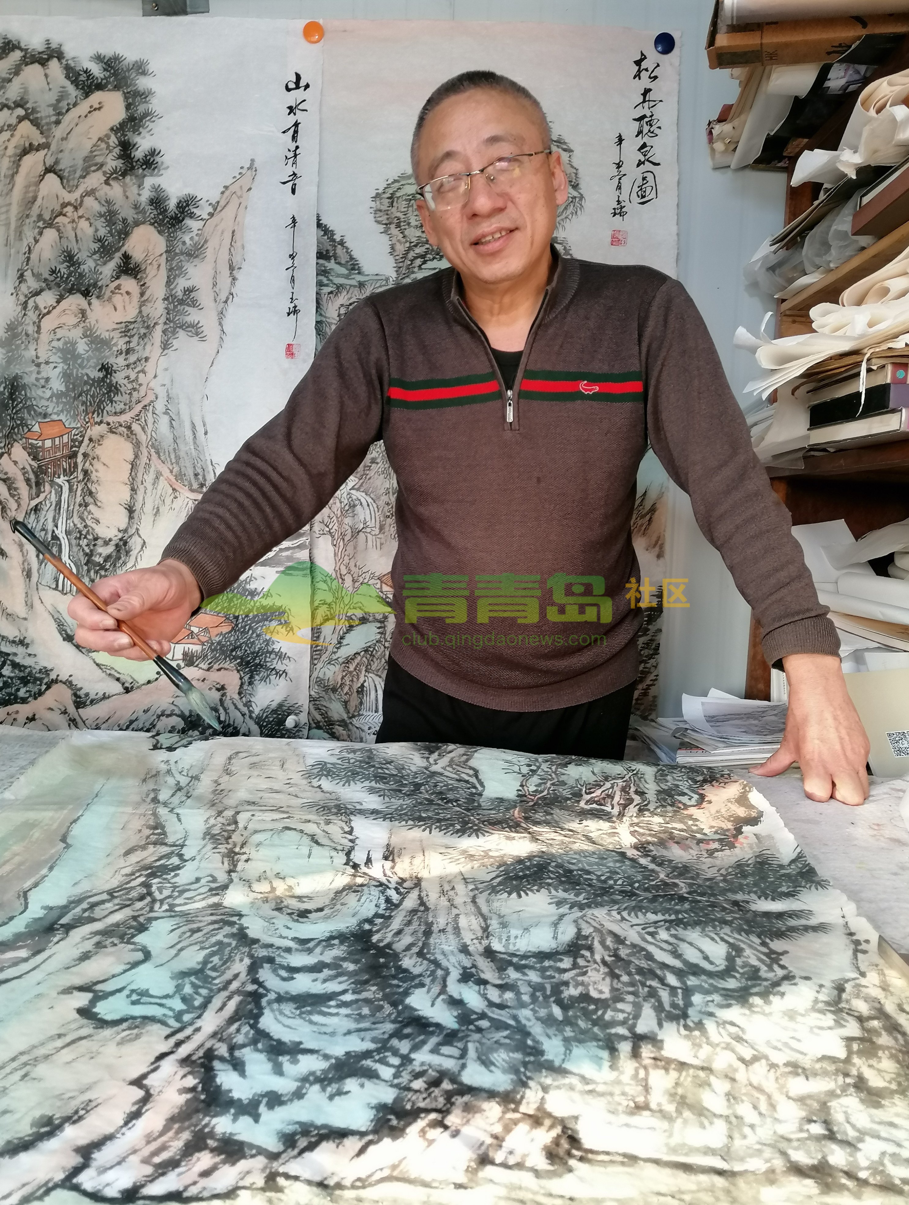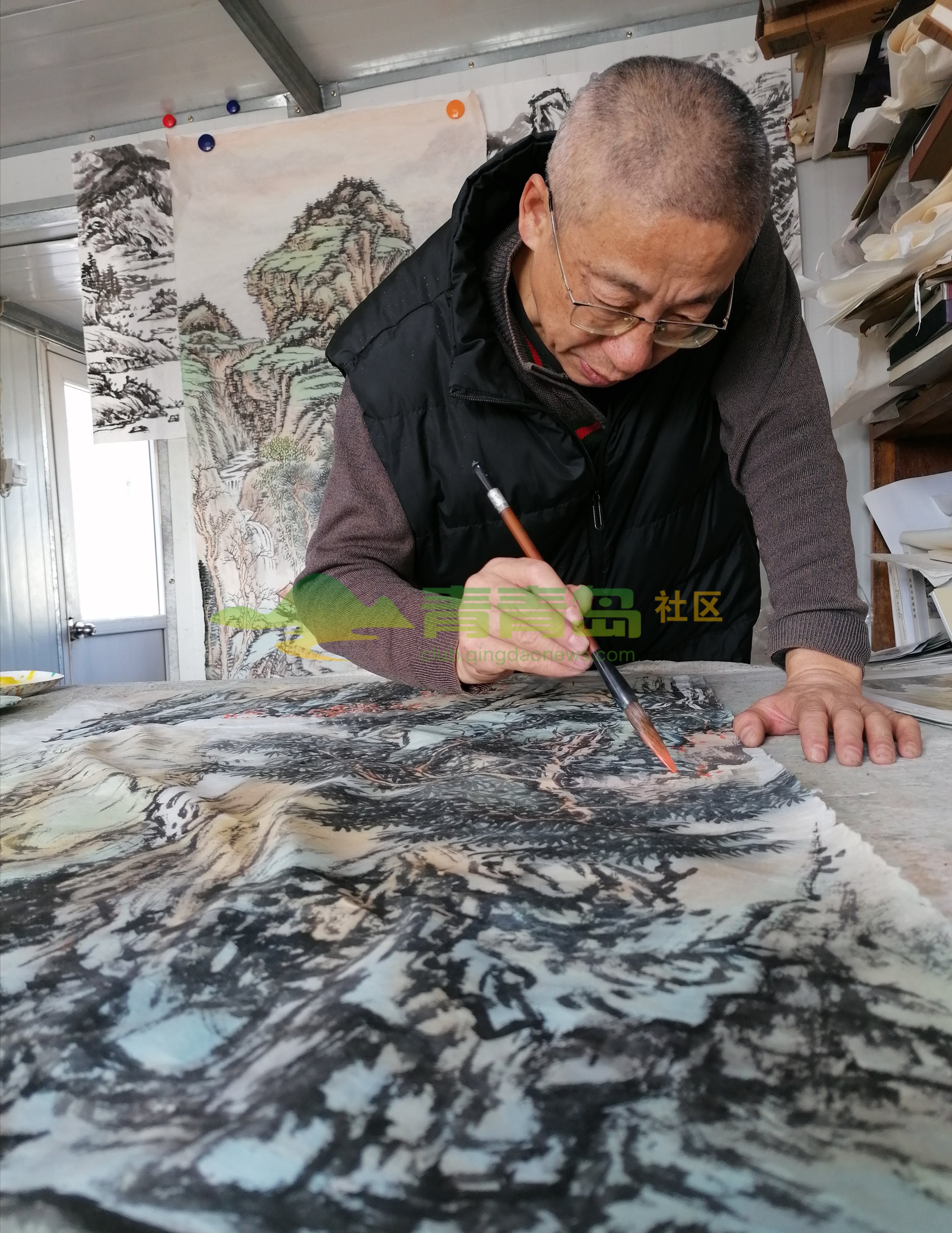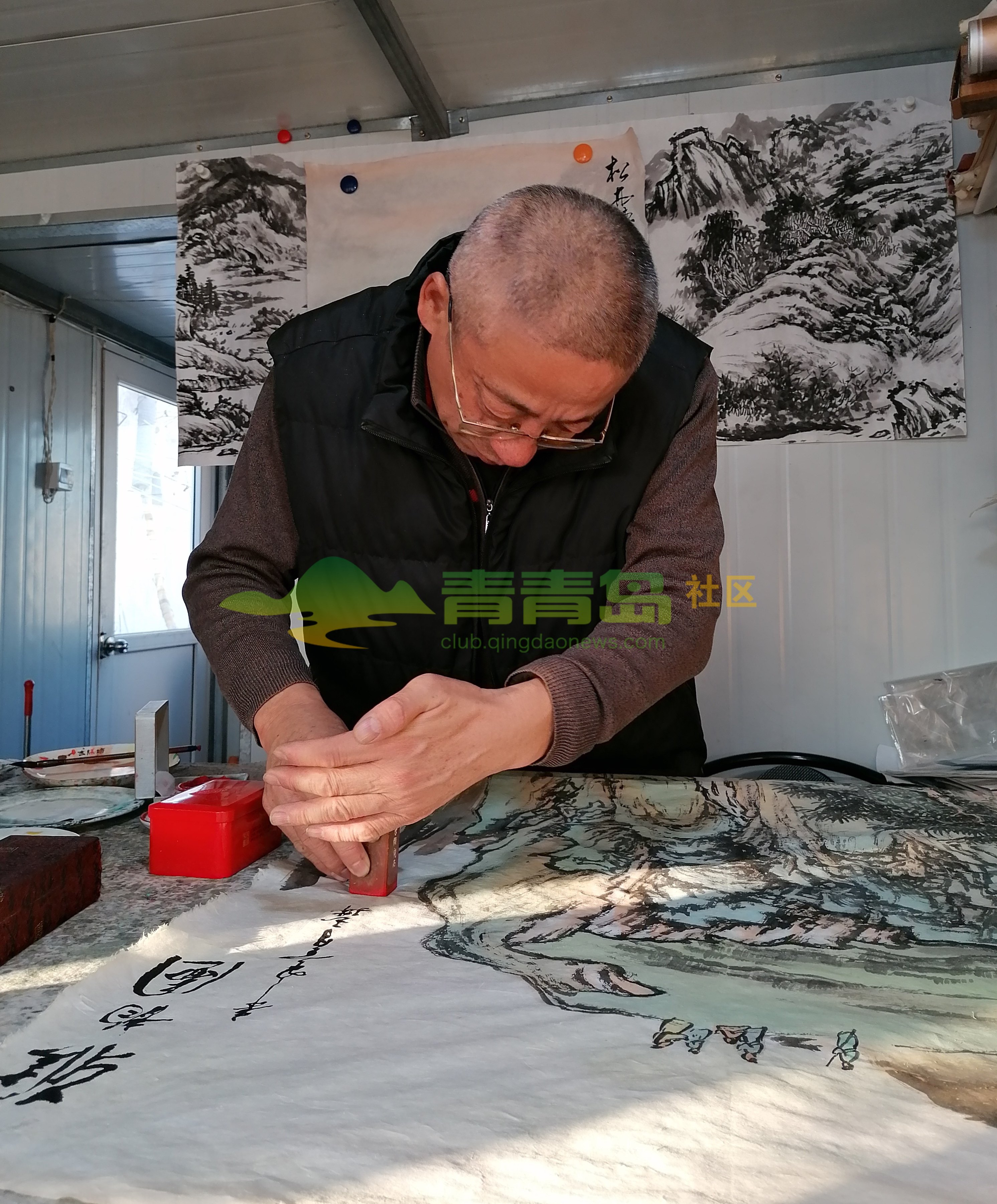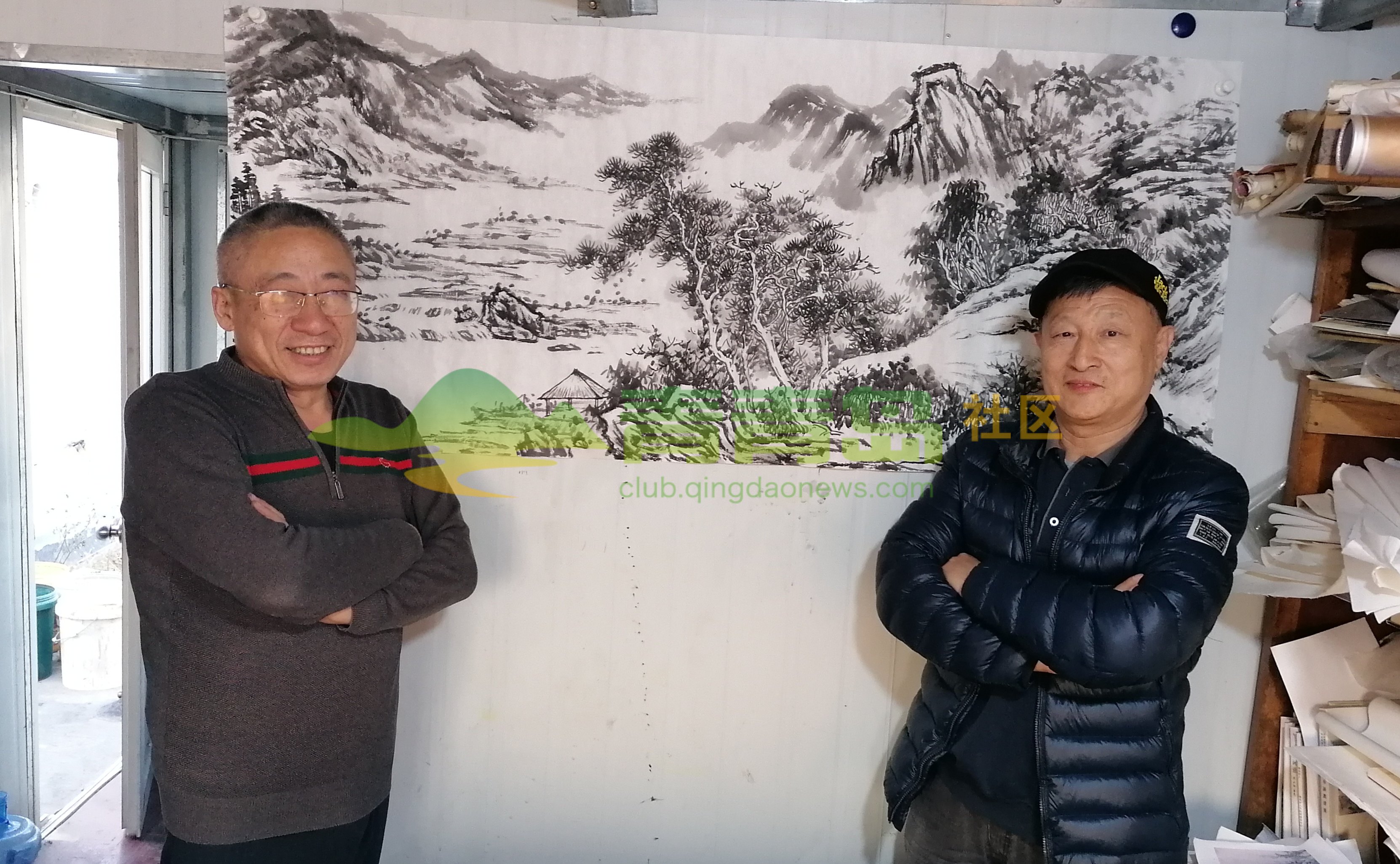 老派画家赵玉瑞与新诗人书法家刘玉义联袂交流笔会:青岛李岩摄影报道