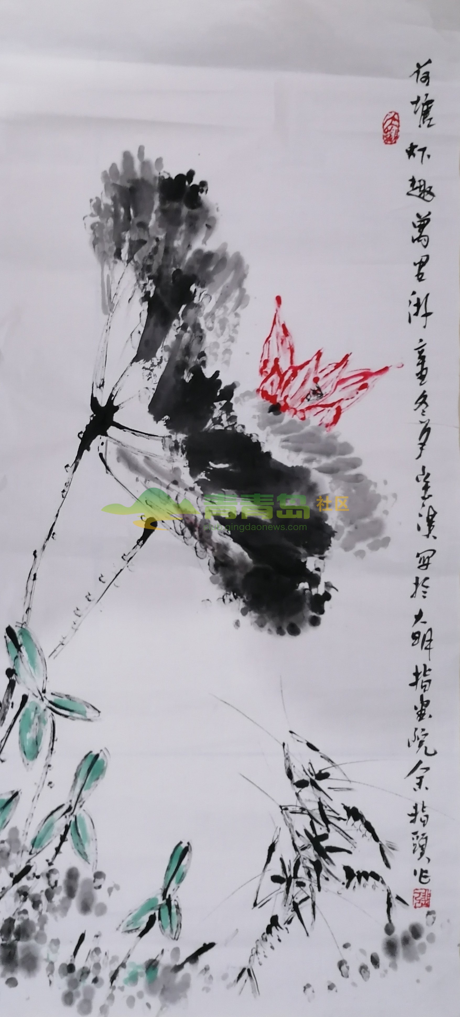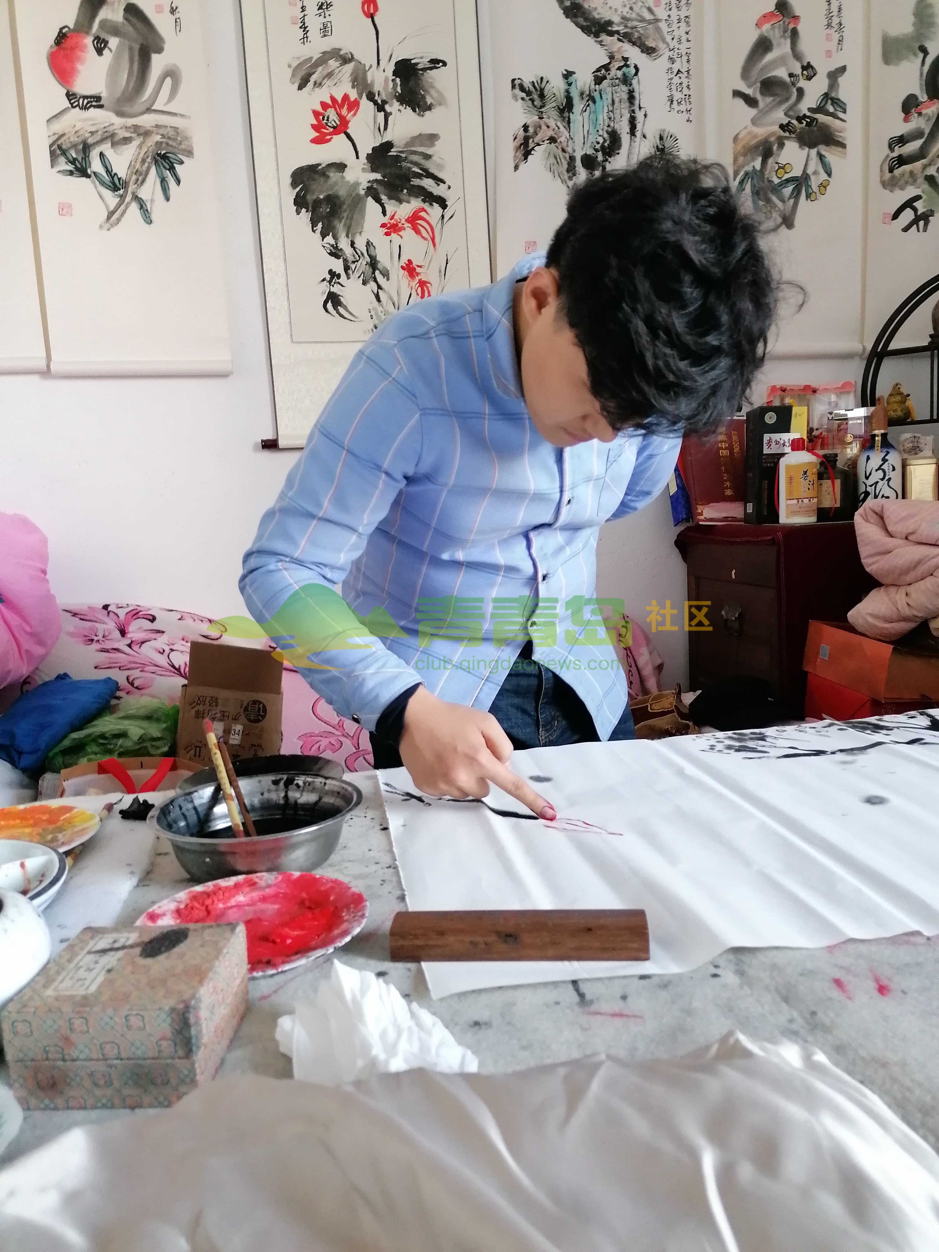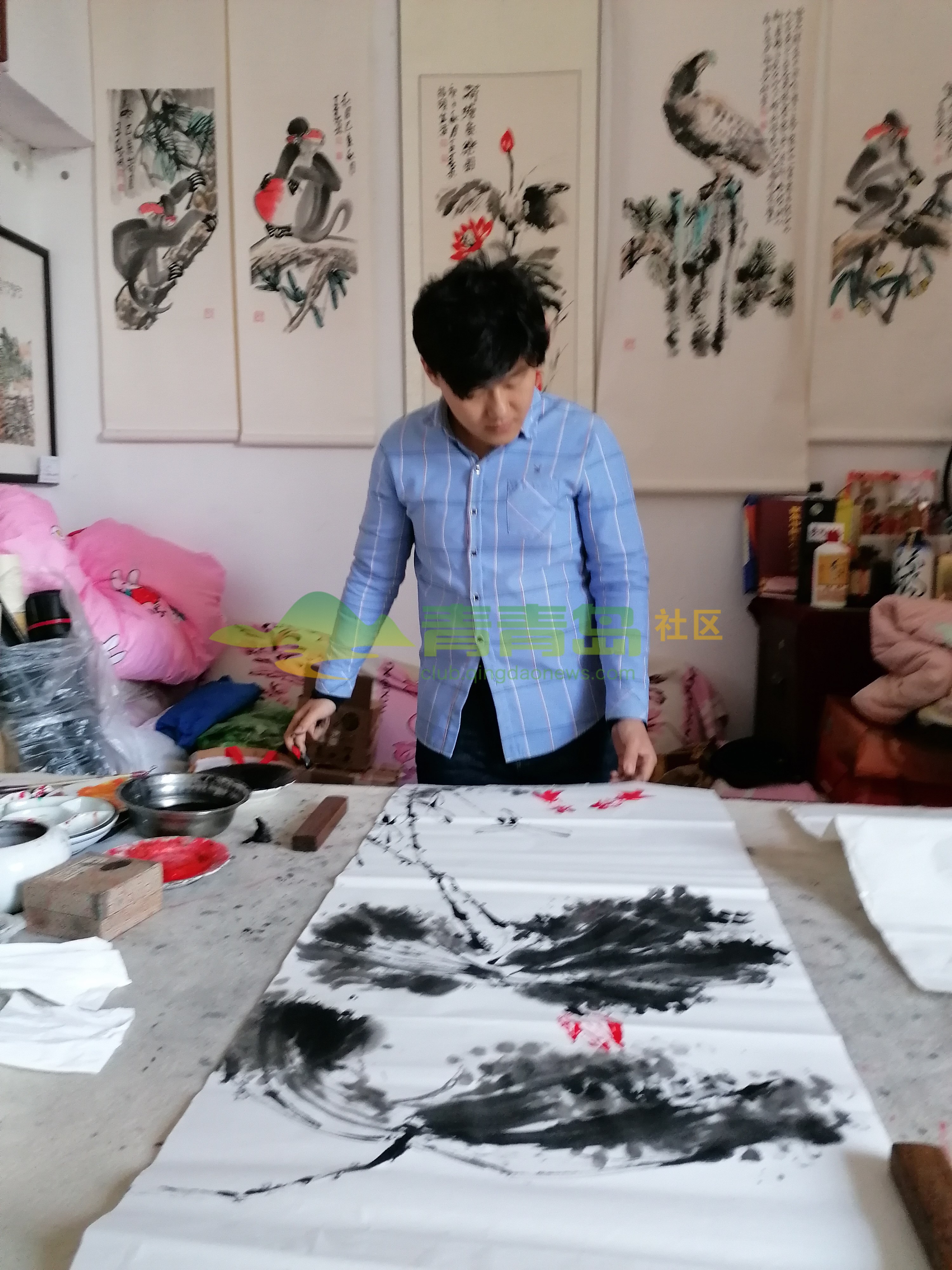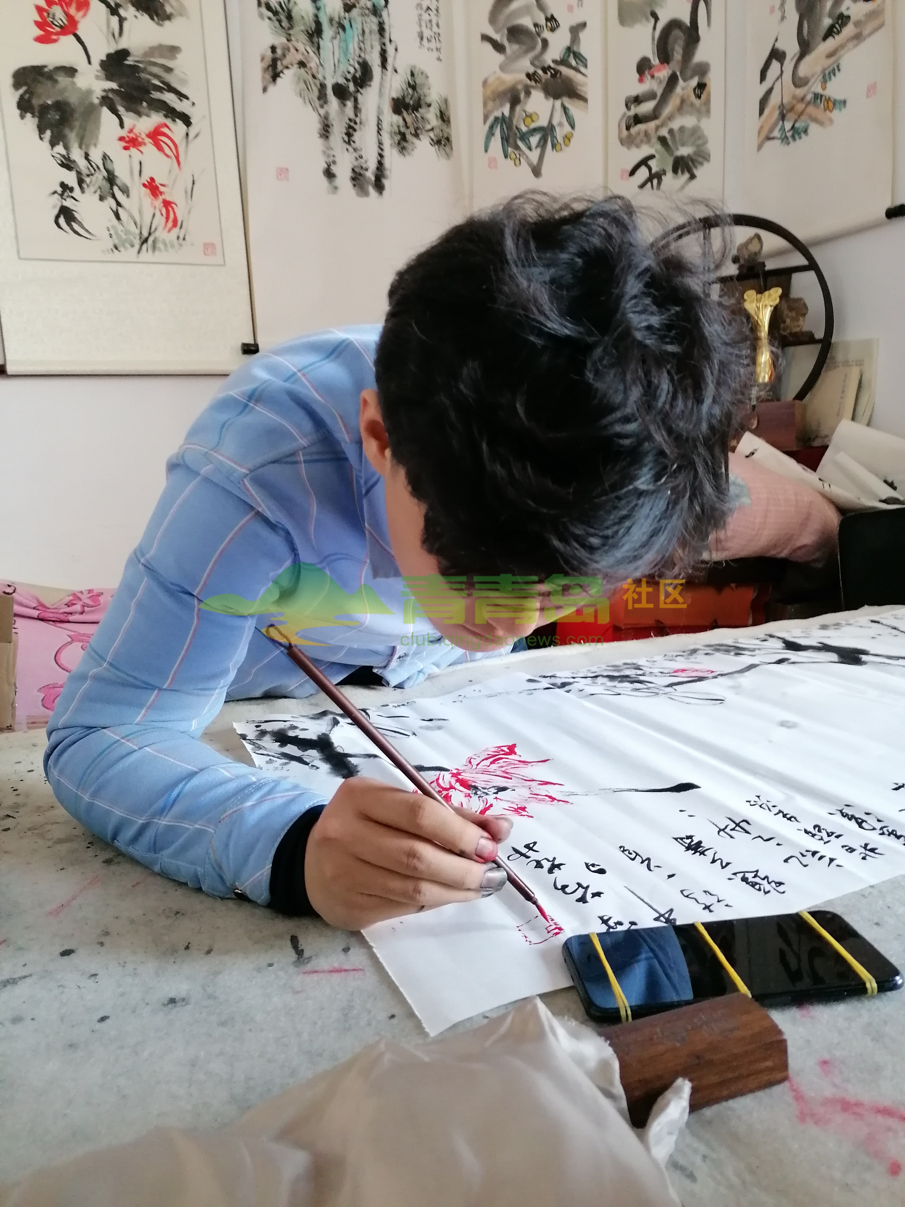勤学苦练,见缝插针——青年画家张玺淏指墨荷花雅赏:青岛李岩摄影报道