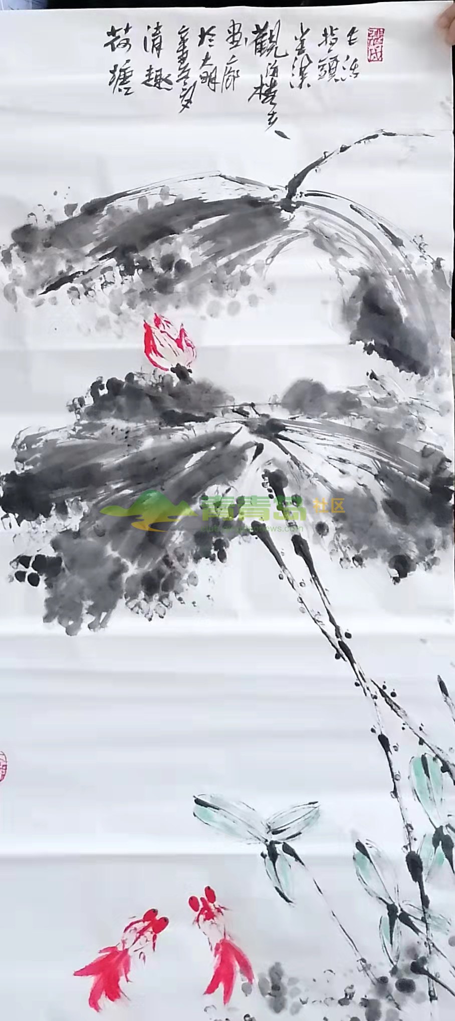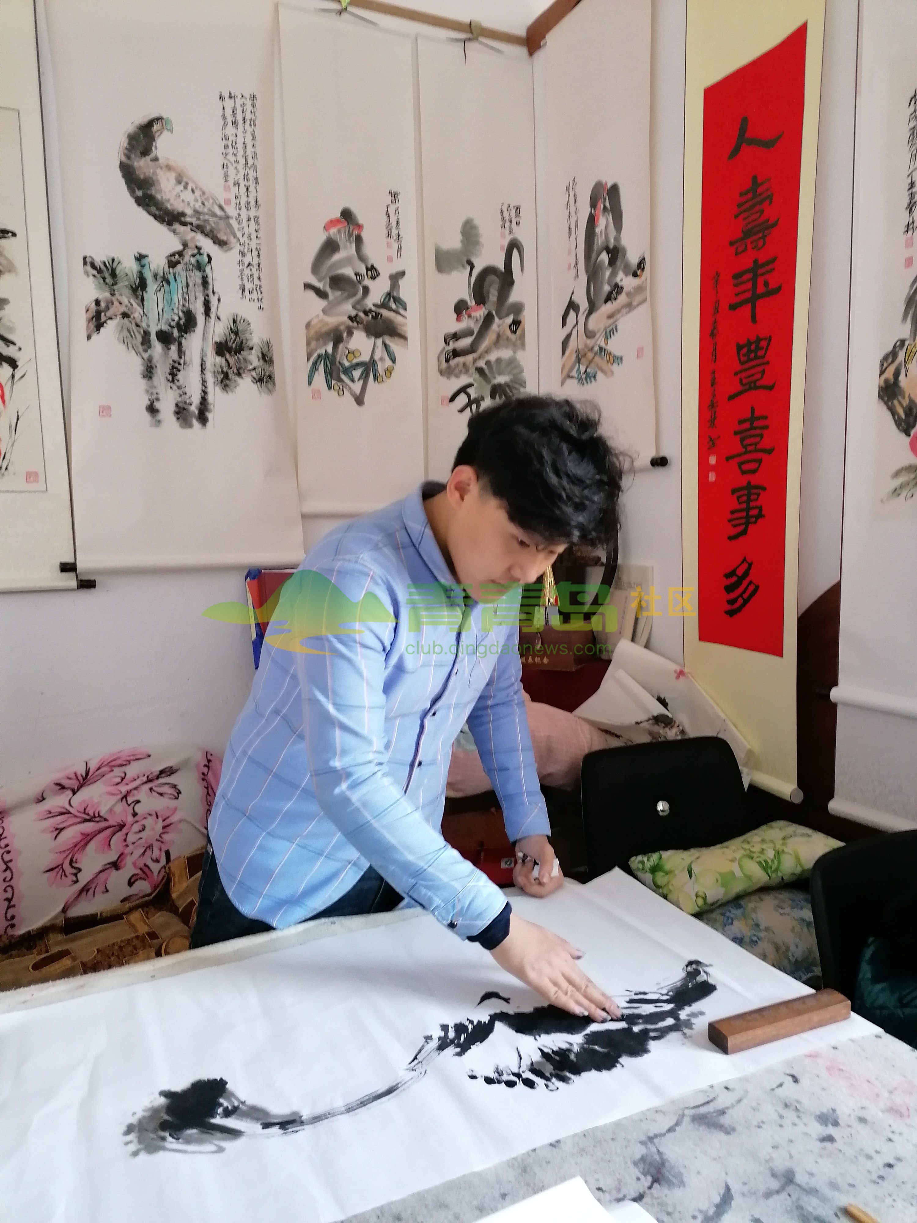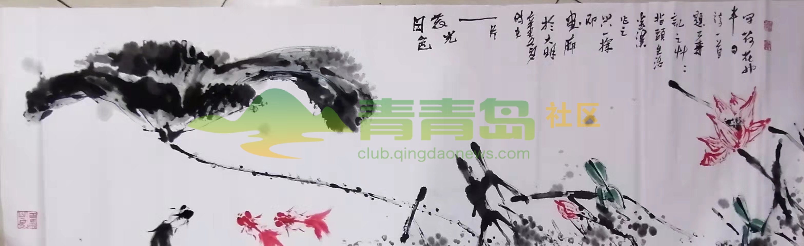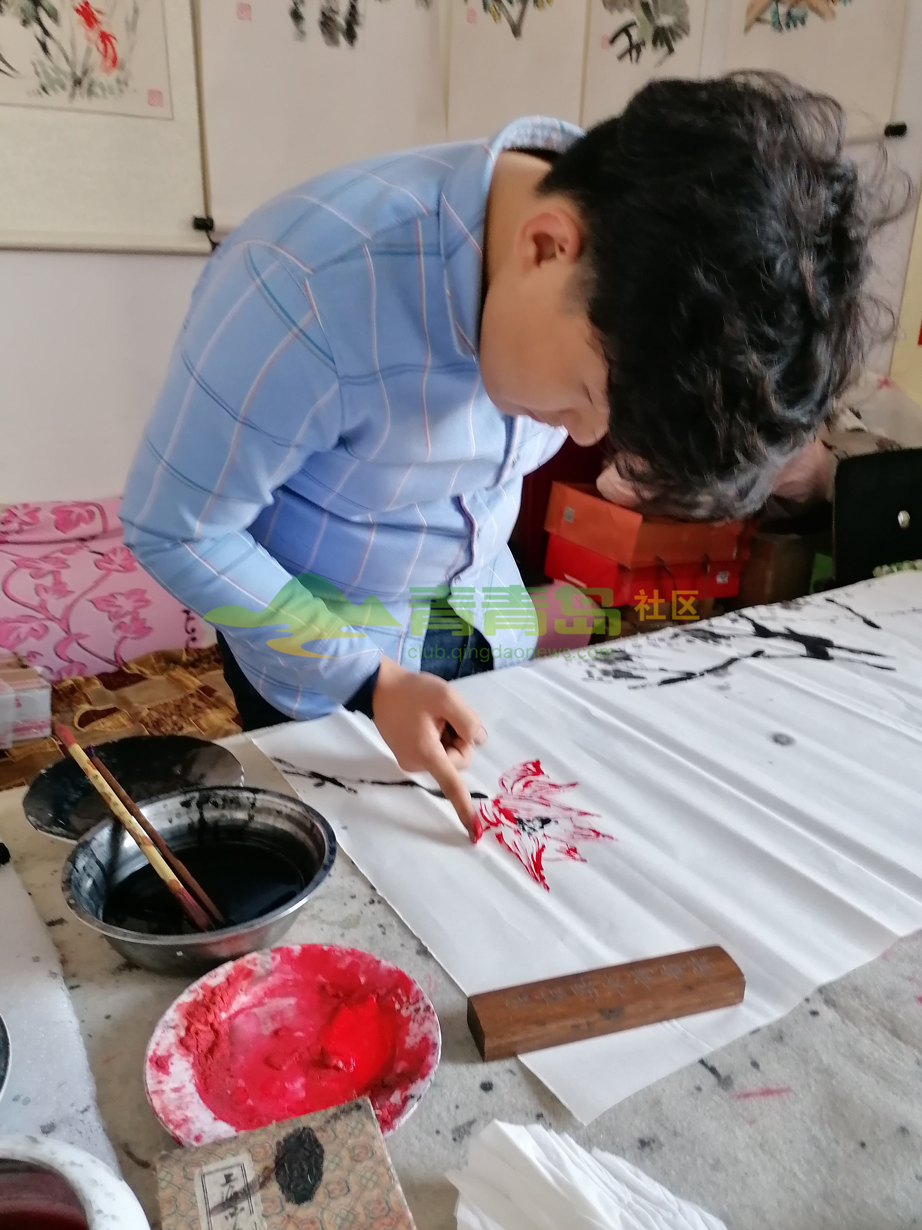 勤学苦练,见缝插针——青年画家张玺淏指墨荷花雅赏:青岛李岩摄影报道