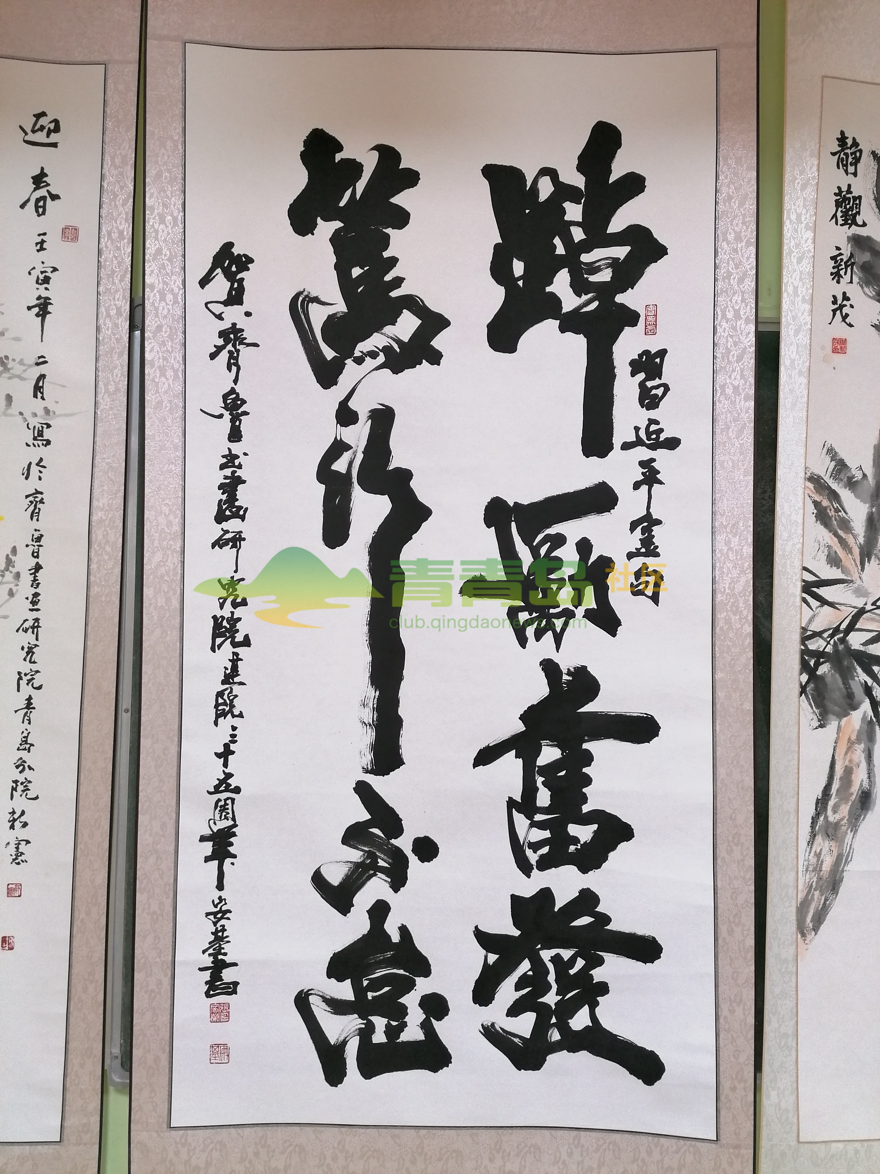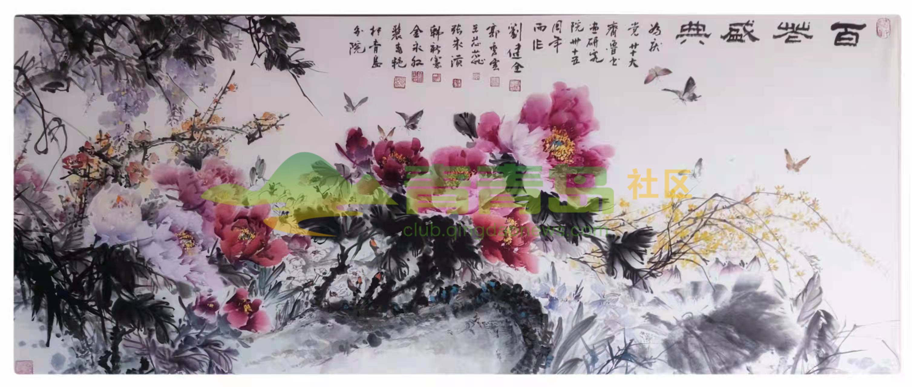 齐鲁书画研究院青岛分院刘建全院长、 郭秀云副院长、张永贡名誉院长、韩新宪名誉院长、王芯蕊副院长、金永红、裴春艳主任,为庆祝齐鲁书画研究院建院35周年合力创作。