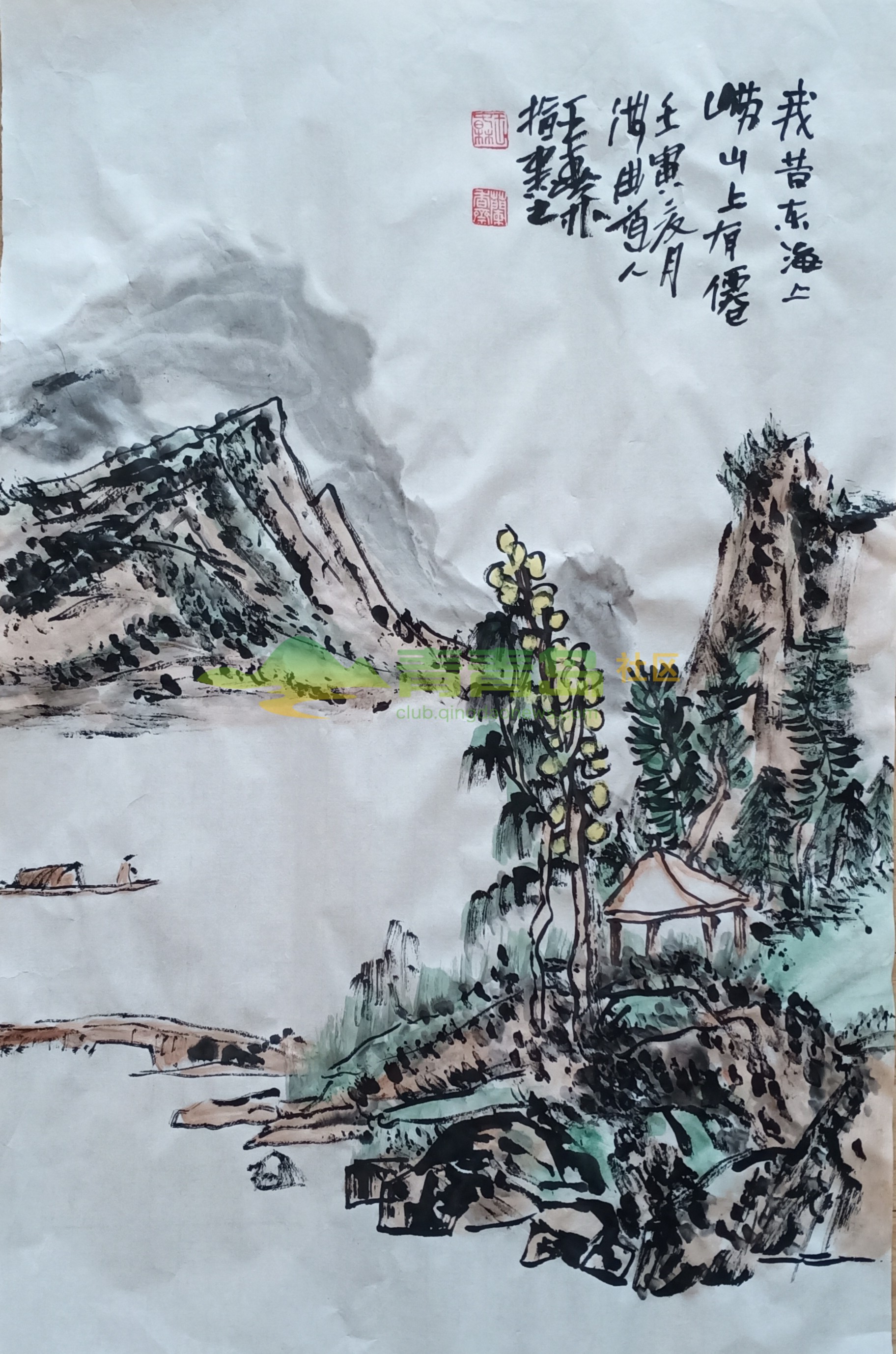 辛丑年的一天,在大明指画研究院的一次艺术交流笔会上,副院长于爱丽展示了王春林院长创作的指墨山水册页,上面12幅以崂山为主要创作题材的指墨山水作品,每幅作品都画得酣畅淋漓,栩栩如生,使人感觉身临其境,心旷神怡。