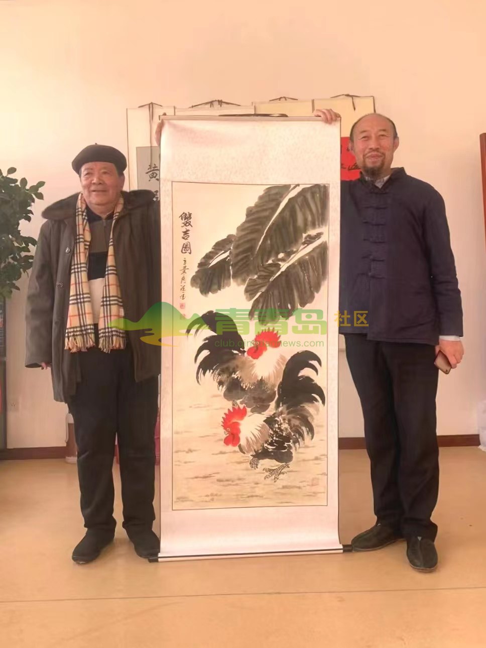 左起:文化达人魏鸿山董事长、农民画家高德金