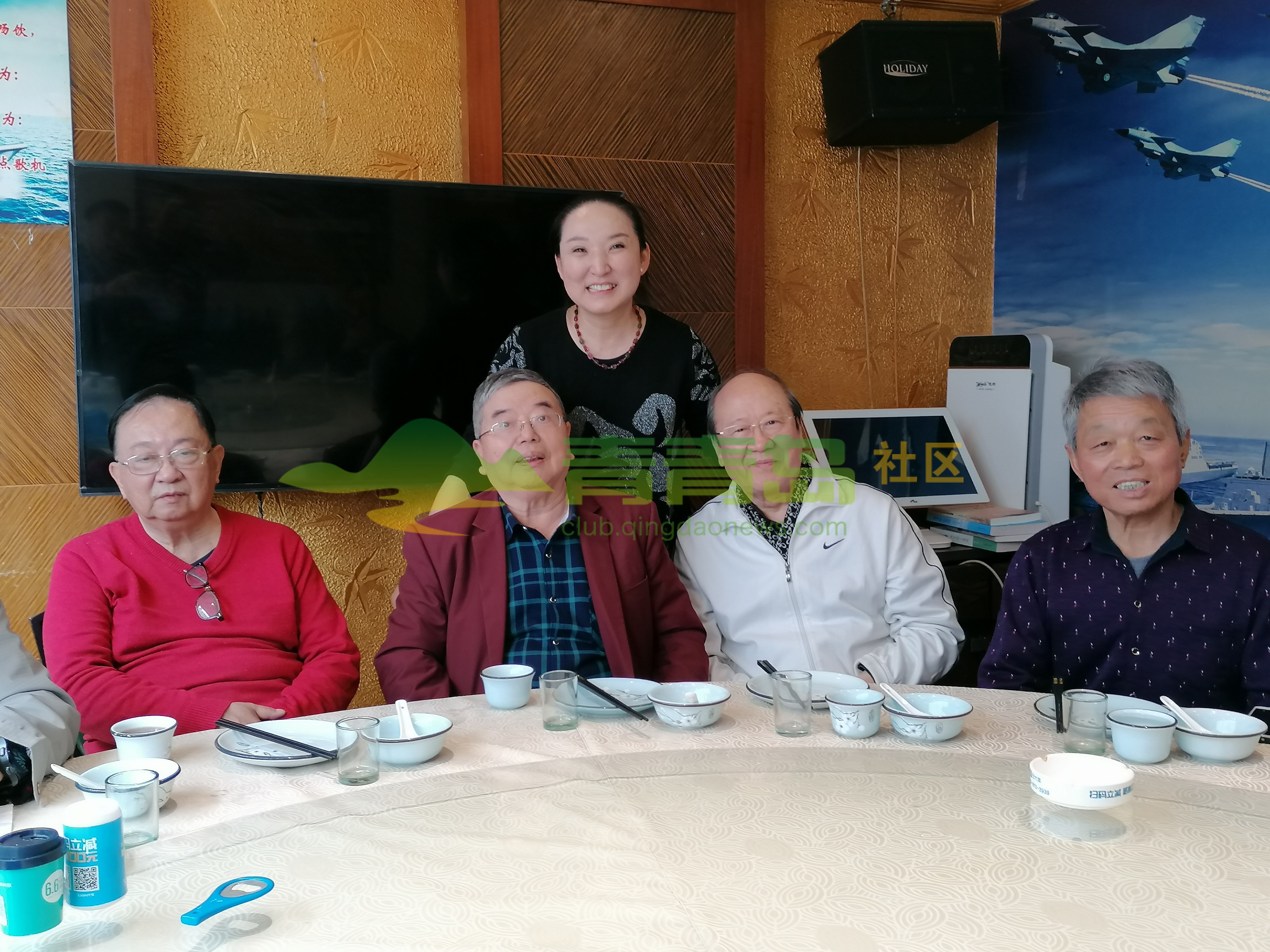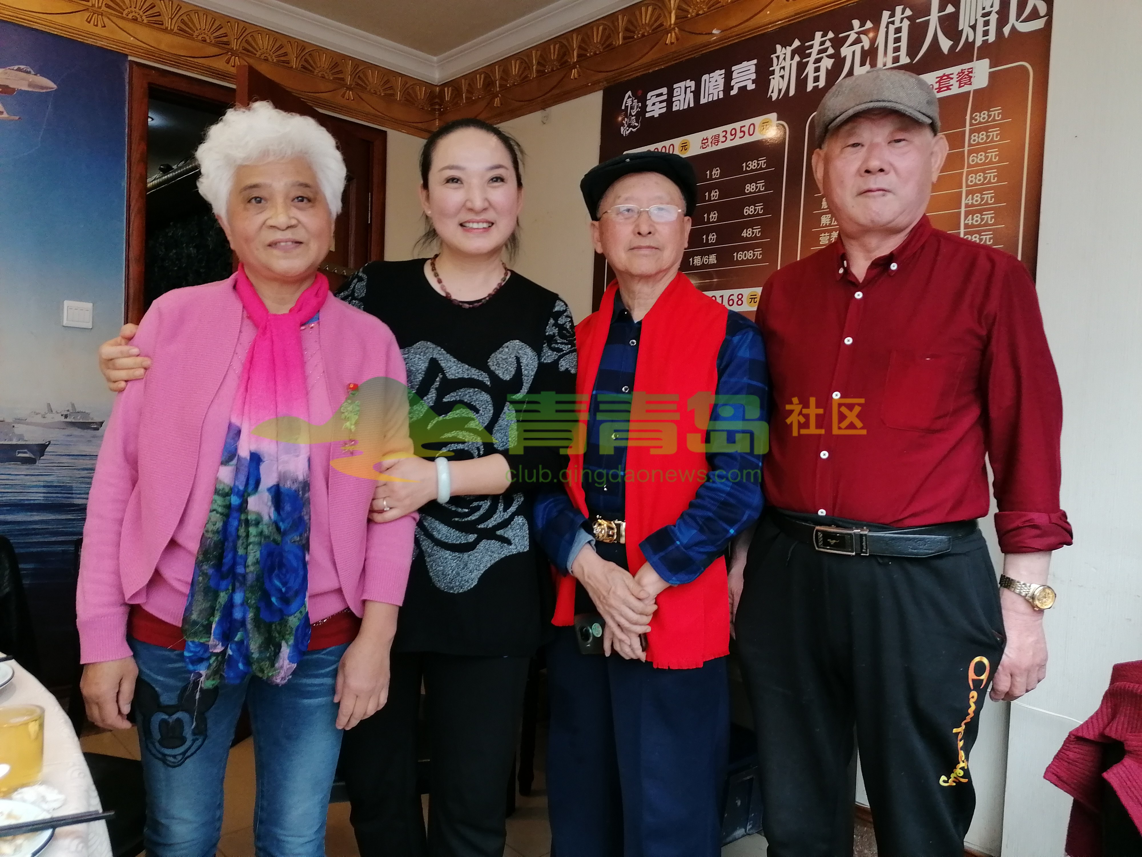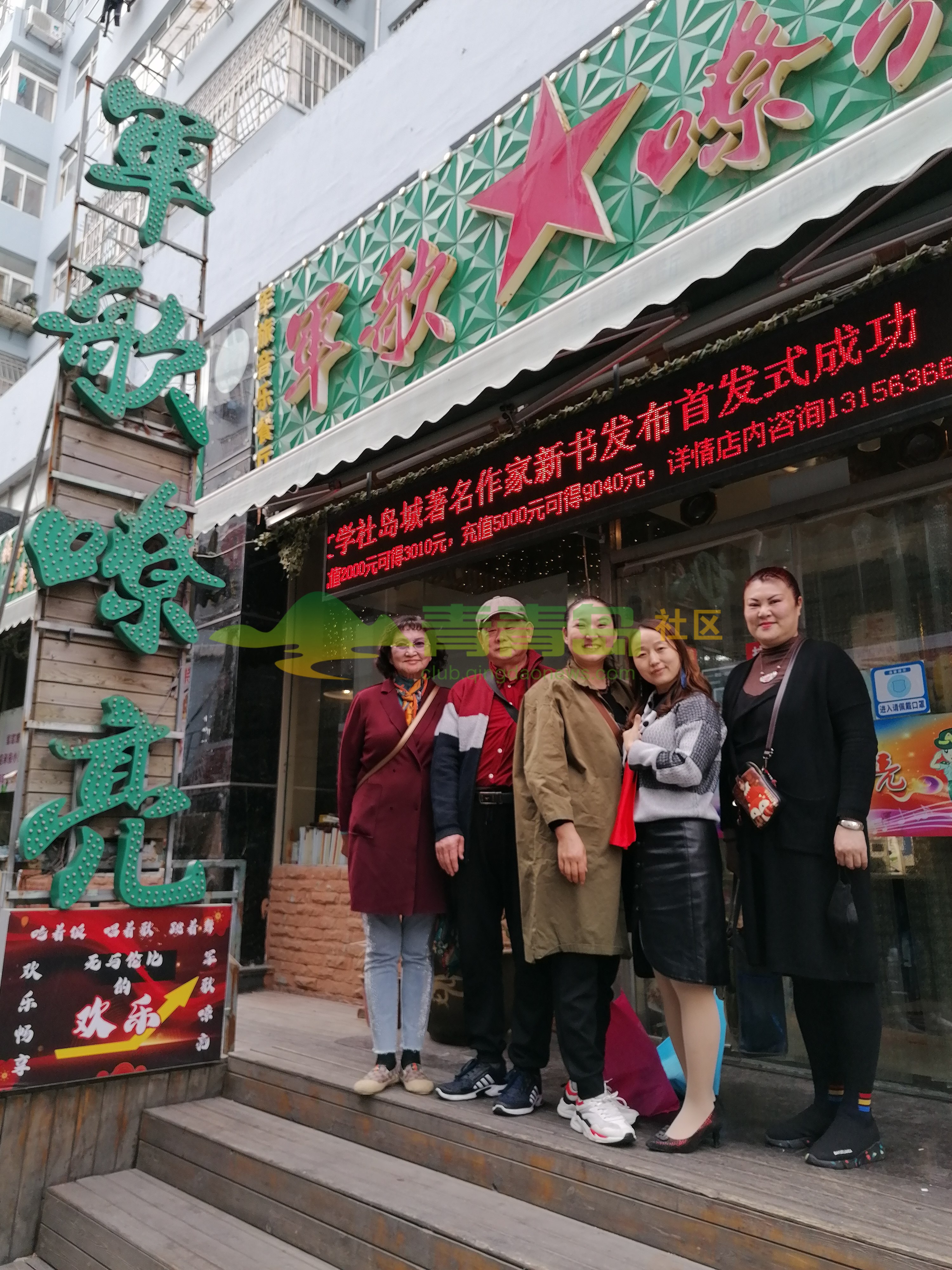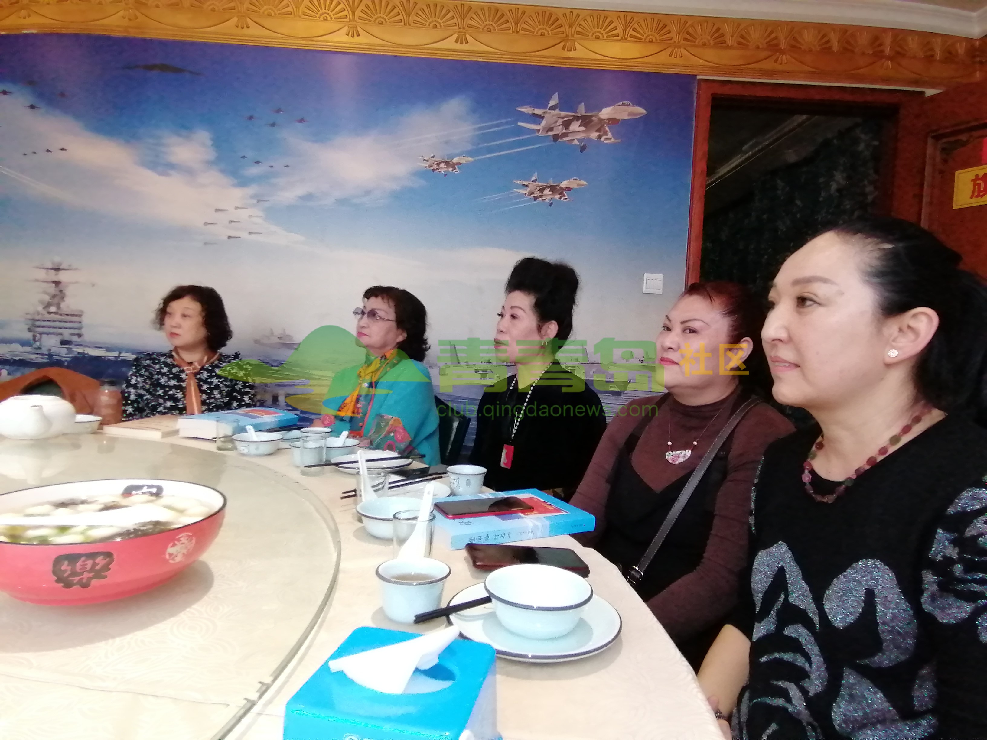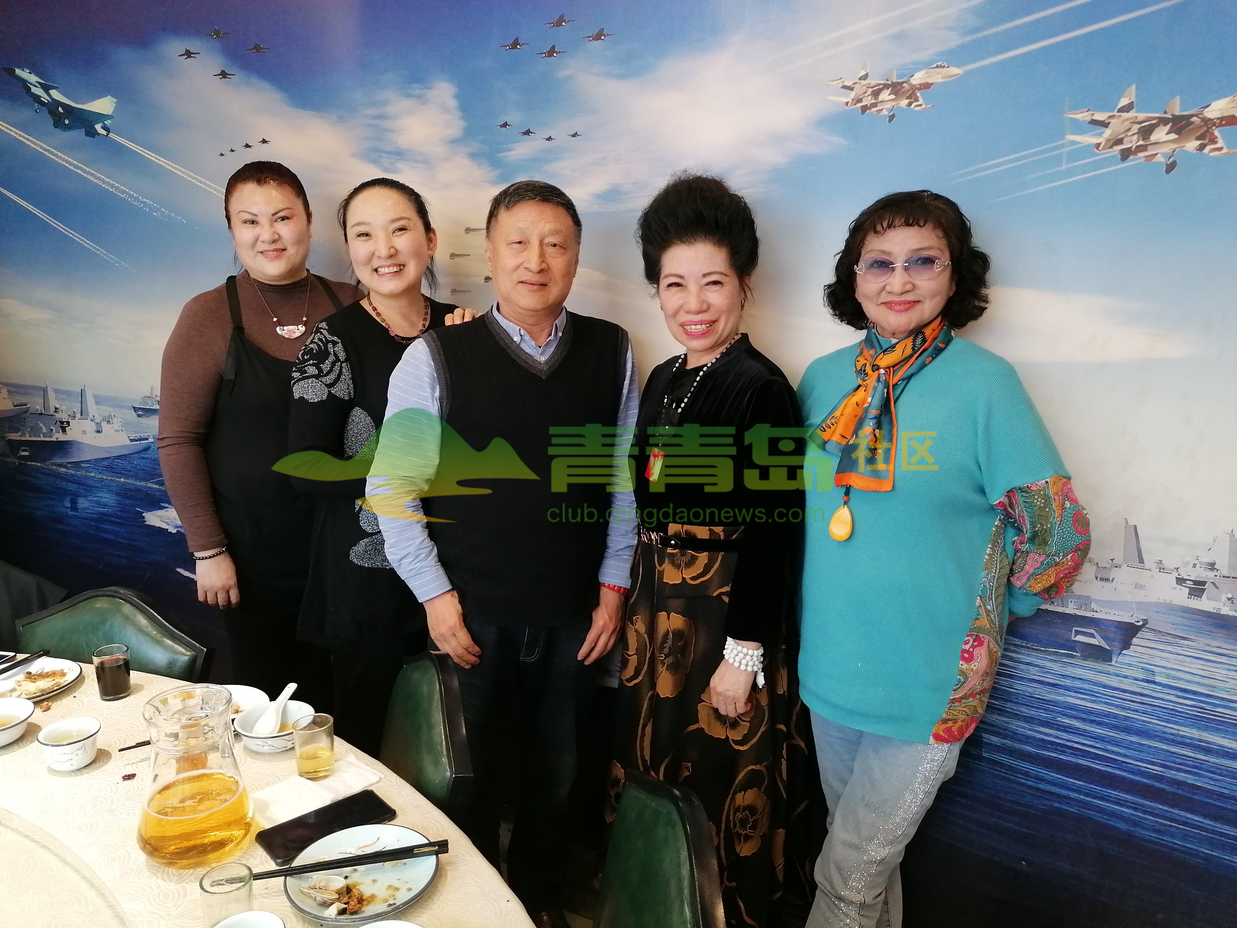 左起:青岛新疆艺术团荆团长、刘华院长、自由撰稿人李岩、青岛歌者魏海萍、总政话剧团原演员博文女士