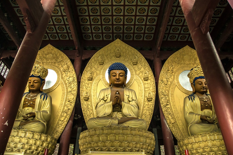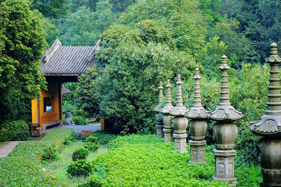 位于大雄宝殿之后中轴线上的佛殿还有药师殿、藏经楼和华严殿。华严殿是灵隐寺内位置最高的建筑,殿内供奉着毗卢遮那佛、文殊菩萨和普贤菩萨……