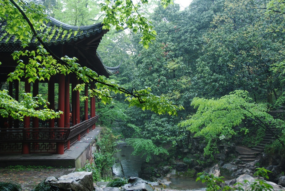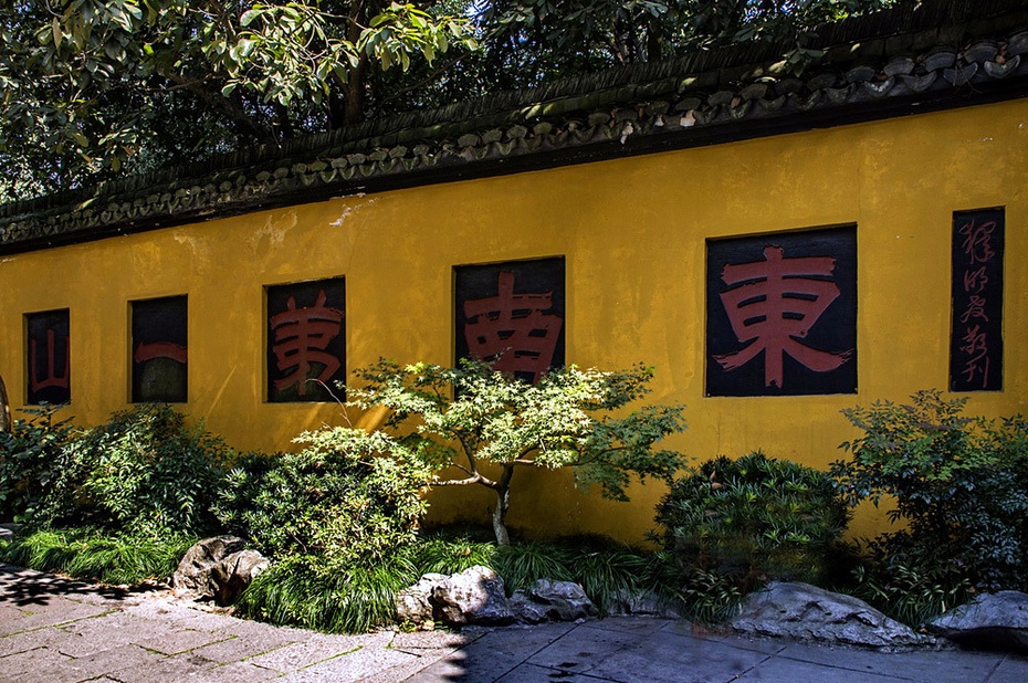 一般寺院,前面往往张扬宽敞,炫耀法门的气派。而灵隐寺隐于群峰环抱的山谷之中,寺前一泓清泉流过,恍如置身于仙灵所隐之地。难怪苏东坡游灵隐,挥毫写出“最爱灵隐飞来孤”的诗句。漫步恬静的小路,参天古树弥漫着清幽古韵,身边清流潺潺,鲤鱼嬉戏,秀峰幽雅,尘意顿消,超凡脱俗了。