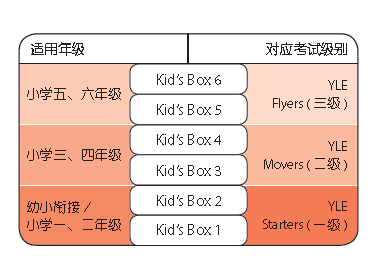 《剑桥国际少儿英语》Kid's Box,它是剑桥大学考试委员会 ESOL 考试部体系下对应YLE测试的剑桥国际少儿英语,剑桥体系最后直接对接剑桥通用五级,雅思考试。