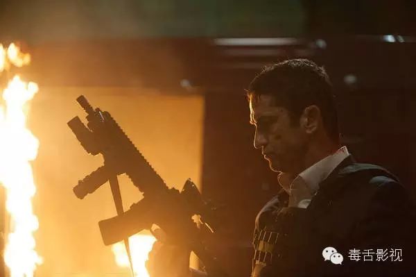 5、当然,主要开挂的还是杰拉德·巴特勒扮演的总统保镖哈,他的牛叉风采相信影迷们已经从上一部《奥林匹斯的陷落》里面了解过了!在那部片子里他一个人灭掉了入侵白宫的大队恐怖分子拯救美国总统,这回则是单枪匹马杀进有上百恐怖分子驻守的老巢,救出即将被网络直播斩首的总统。至于弹无虚发、枪枪毙命,一个人轻轻松松干翻N个恐怖分子这种“普通开挂”的动作戏,片子里面多的是,在这里就不多说了。