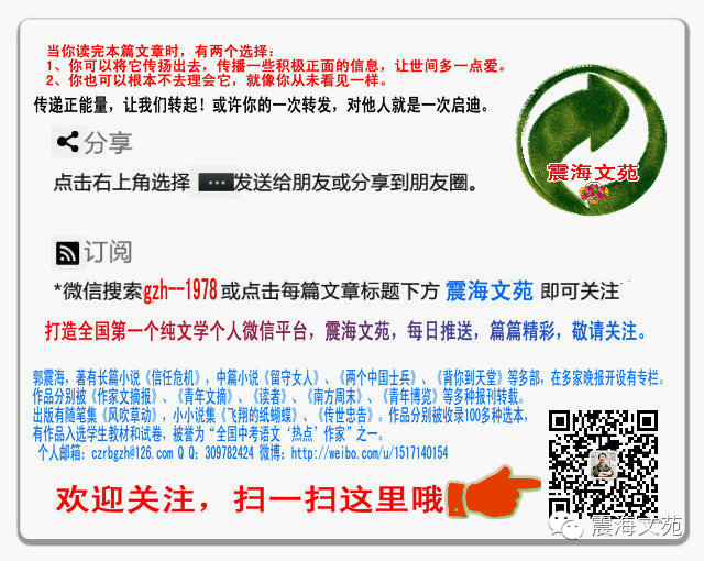 用心灵谱写美文,用真情传递感动。震海文苑:微信:gzh-1978