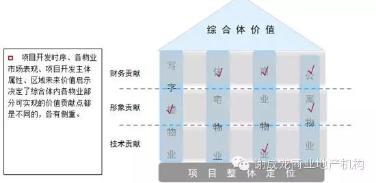 2.形成都市综合体的价值链:办公、住宅、商业、公寓(酒店)共享人流。