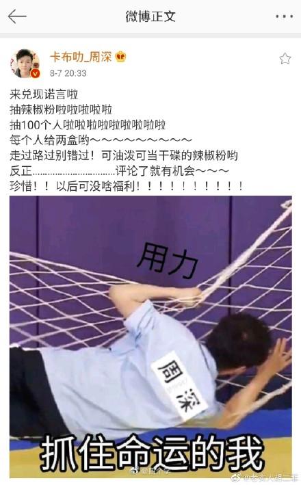 例如,周深500万粉丝时,就抽奖送粉丝辣椒粉,是真辣椒粉哦,这种无厘头的风格特别符合他的人设,让人记忆尤深;