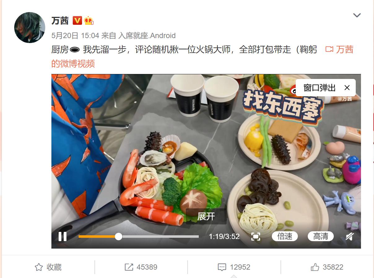5月20日当天,万茜发布了700万粉丝福利视频,原来不擅厨艺的茜茜,这次竟然挑战了下自己,给粉丝们准备了一份火锅大餐,不过,这过程好像有些不太顺利……