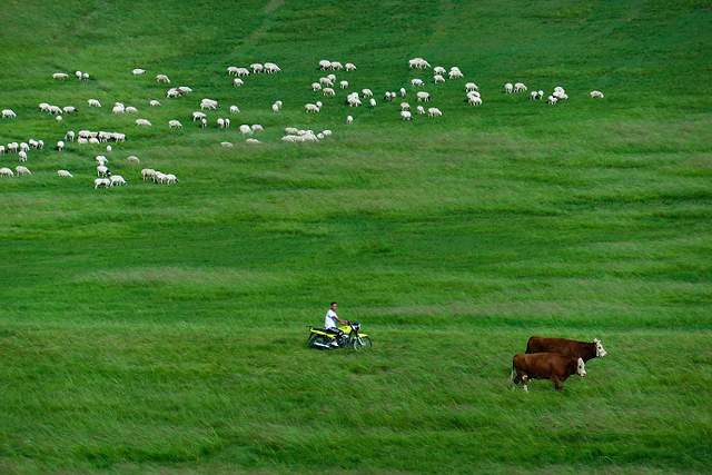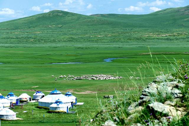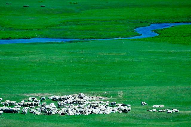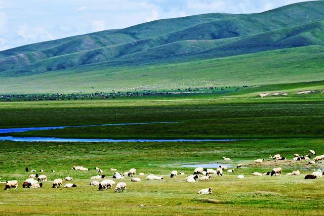 碧色千里的大草原,悠扬的马头琴声,喷喷香的奶茶,热情好客的蒙古族同胞……骏马在驰骋,牧民在歌唱,蓝天白云下那草原上的牛羊骏马牧人,构成了一幅幅动人的画卷。