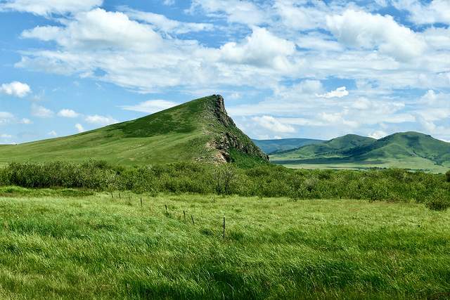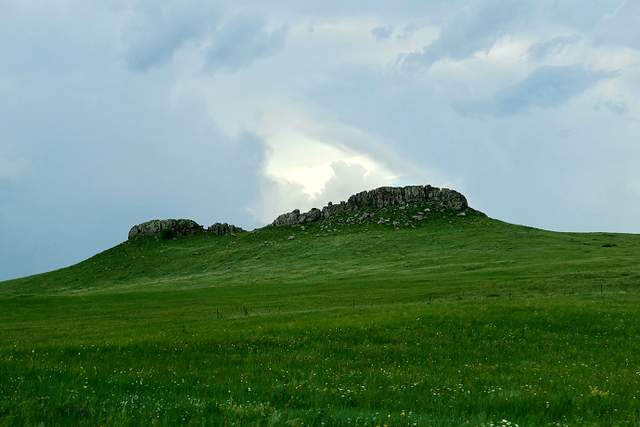 平顶山为亿万年前火山喷发而成,亦称熔岩台地,远看虽平如刀削,但当登上此山顶,你会发现山顶高低不平,且布满大小不等火山喷发留下的凝灰岩岩块,许多地方基岩裸露。平顶山北依典型草原,南偎沙地疏林景观,东西均为典型草原风光。