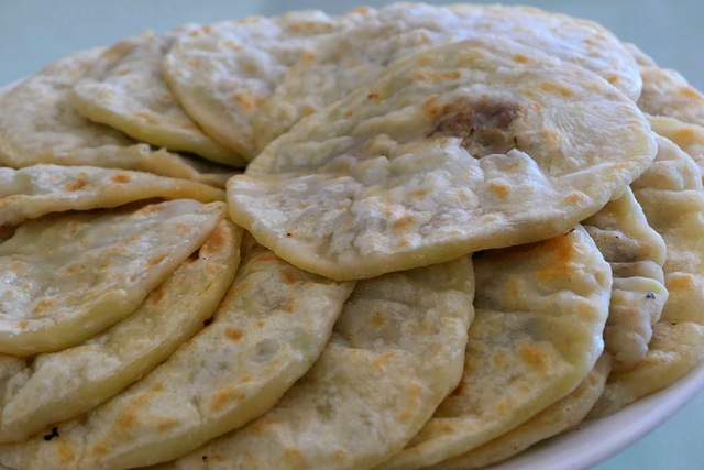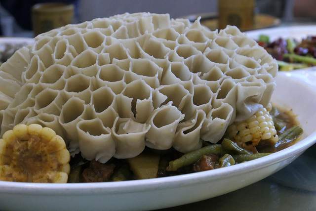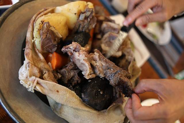 驴肉和莜面卷卷、烤莜面土豆饺子;在正蓝旗上都镇草原往事餐吧必吃肚包肉。