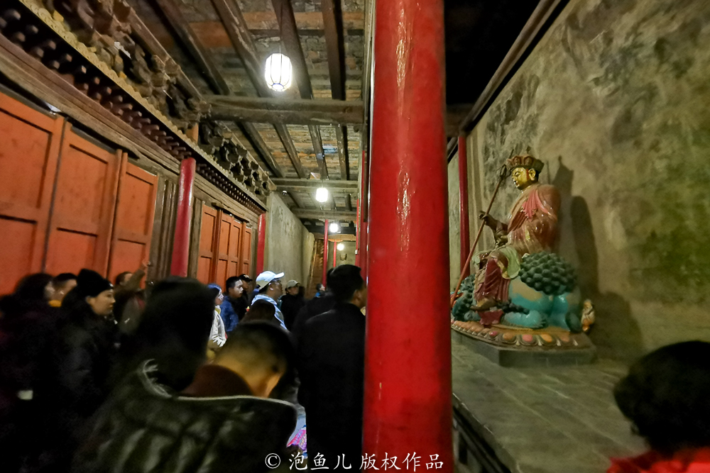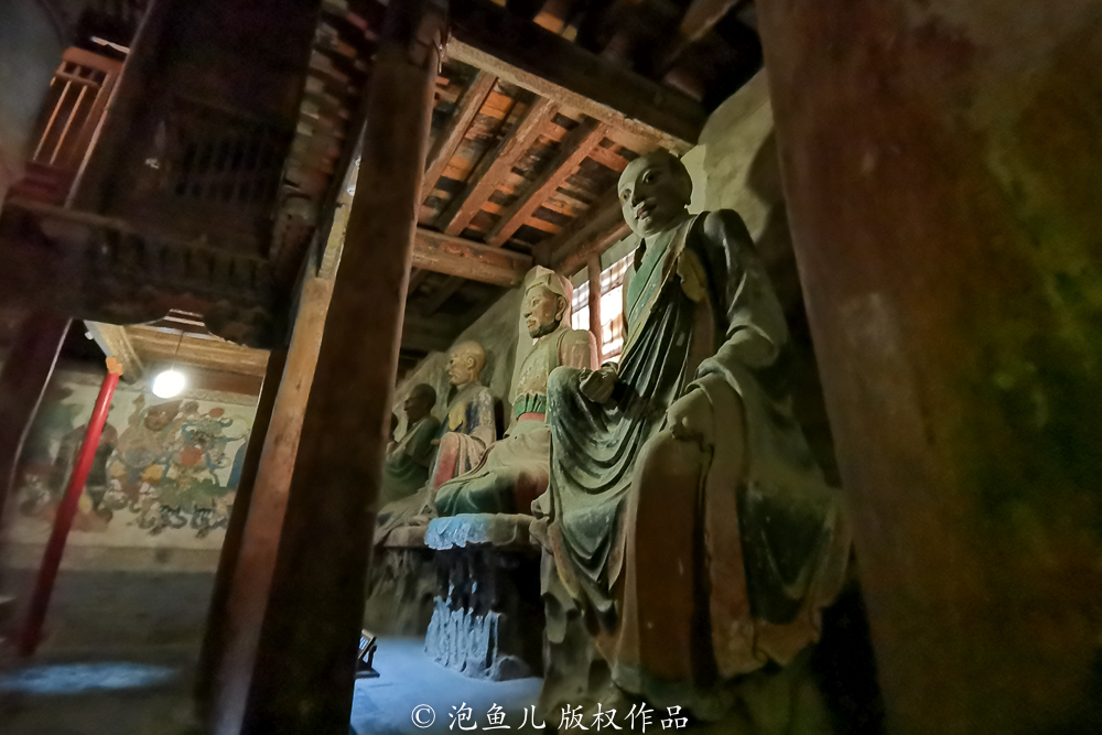 特别值得一提的是,在大佛背后供奉的唐僧身后的墙壁上,还幸存有一幅完整的唐僧师徒三人西行取经的壁画,主要讲的是“流沙河擒拿沙僧”、“高老庄猪八戒招亲”、“大圣闹天宫”、“活人参果树”、“恨逐美猴王”、“大战火云洞”、“路阻火焰山”、“四众西行”等故事。