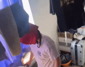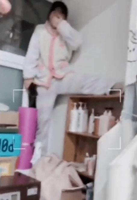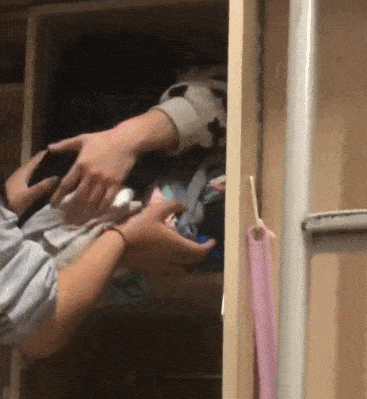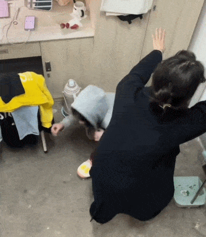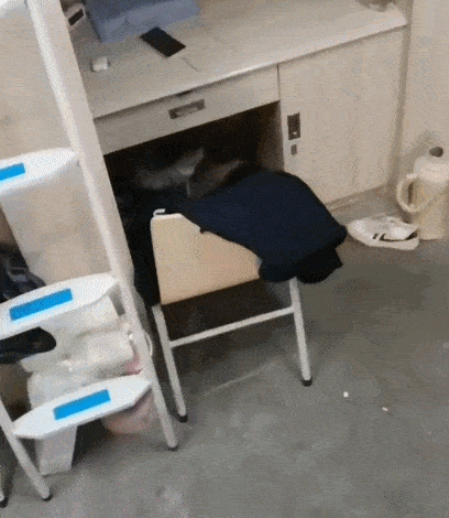 更绝的是,女生躲进小柜子里还不是最后一步,还需要把衣服摆在柜子口来迷惑敌方。