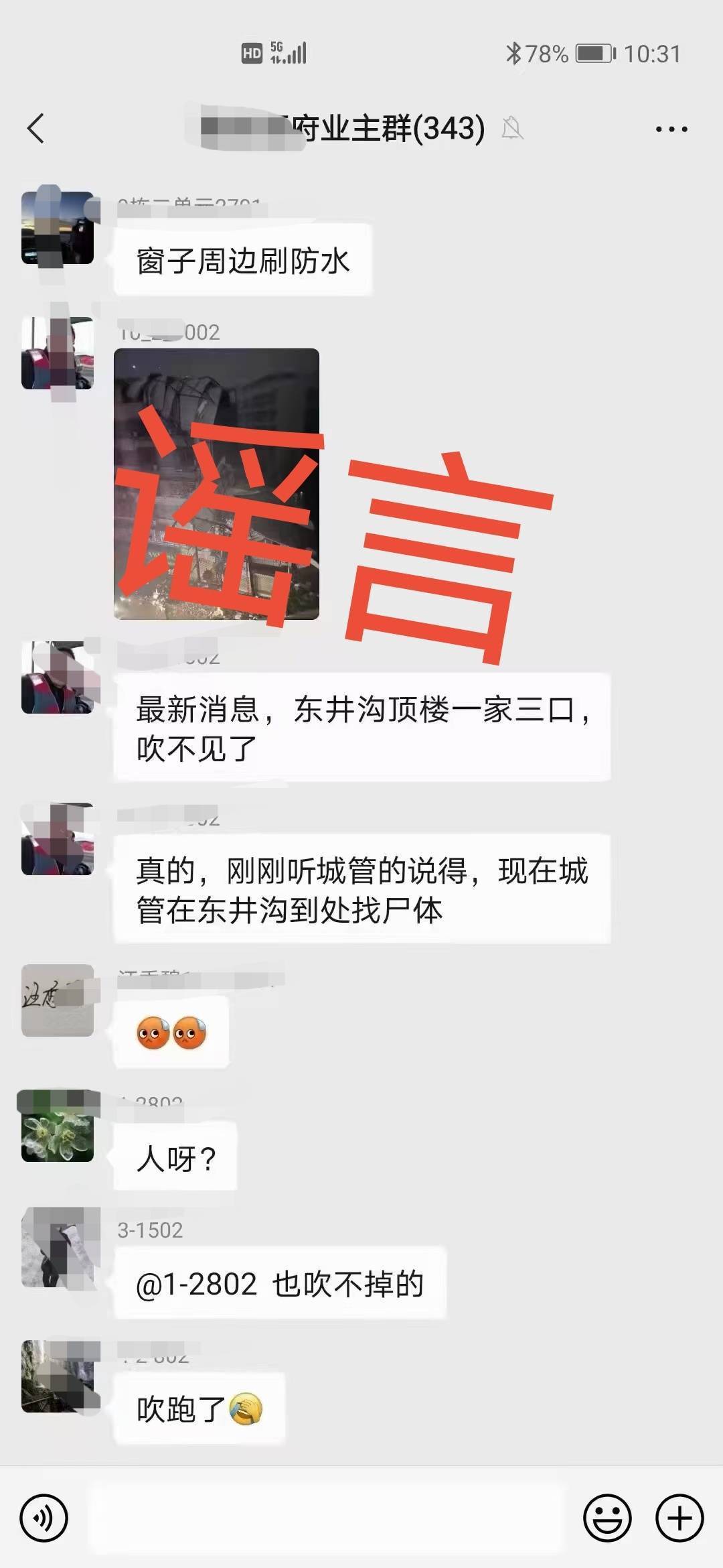 在安岳当地一小区业主群,谭某某发布了“东井沟顶楼一家三口被吹不见了,城管到处找”的信息。经公安机关调查,谭某某自行编造虚假信息,发布在社交平台。随后,该消息被大量转发,扰乱了社会秩序。