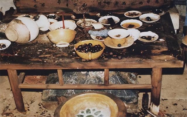 子里的食物上都凝结了一层水,水起到了保险作用。除此之外,考古队还在墓中发现