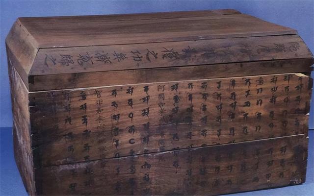 了一只木箱。木箱四周写满了梵文和汉文相杂的文字,经辨认,是陀罗尼经咒。打开木箱,里面有两个穿戴整齐的草偶,一男一女。男的约90厘米,女的约80厘米。