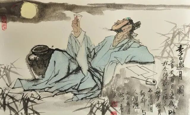 李白此时高举起手中的酒杯,面对孤悬在天边的明月,于是高吟出他人生最后的绝唱: