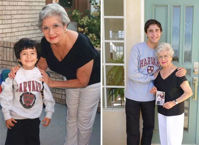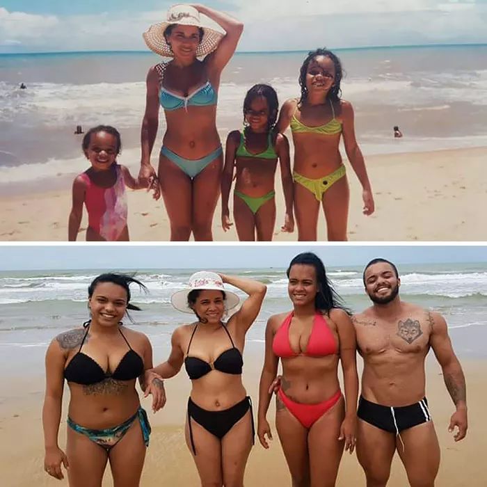 20年后回到了同一家照相馆穿着同款式的衣服拍了同样的照片
