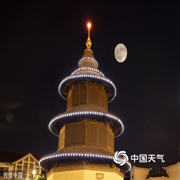 2022年6月14日,江苏省扬州市,文昌阁旁“超级月亮”升起。(齐立广/视觉...