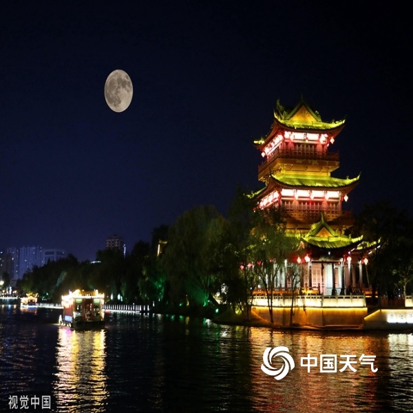 在河南省平顶山市宝丰县君文湿地公园,“超级月亮”亮相。(何五昌/视觉中国/版权图片