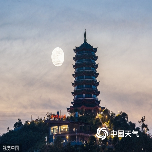 2022年6月14日,在江西九江市德化楼,“超级月亮”亮相。(沈俊峰/视觉中...