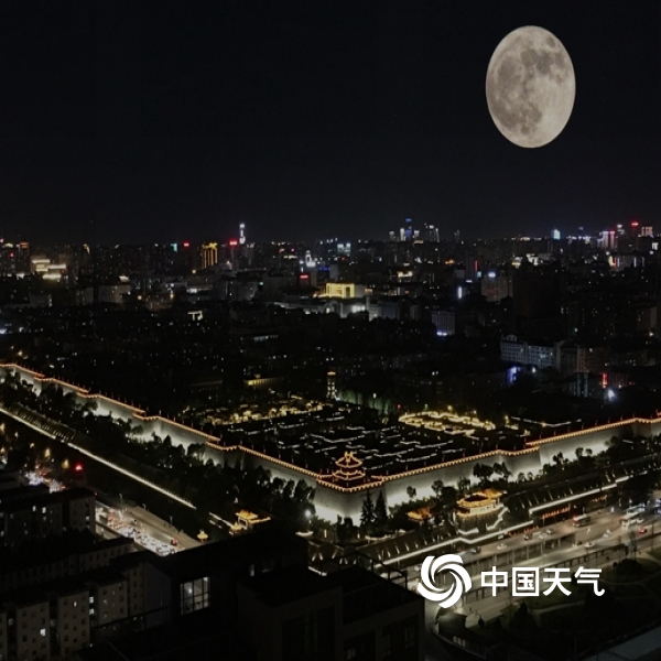 2022年6月14日,陕西西安,“超级月亮”现身夜空。(二次曝光)(拍摄:贾...