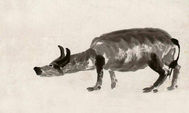 在美术评论专家潘建华的一篇文章中,他“完美”地对齐白石把牛画成野猪的价值所在进行了诠释,关键就在于你不要老是去看这个“野猪”的造型,而是要放大十倍去看纸上的“墨团子”。这个放大十倍才会让我们更加看到局部,而把这头“野猪”的整体忽略掉。