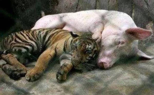 老虎是森林之王,出了名的狠角色,动物们看见它都吓到躲起来。而作为动物界的温柔代表,猪猪吃了睡,睡了吃,丝毫没有攻击性。有人就好奇了,如果把老虎幼崽和母猪放在一起,会发生什么呢?老虎会把母猪吃了吗?