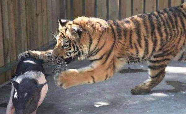 等到饲养员想把长大后 ,能独立生活的老虎送到同类中时。老虎已经把母猪当成了妈妈 ,不想离开 ,都说环境更能影响生物, 受温和善良的猪妈妈的影响。凶猛的老虎也温柔了起来, 不过话说回来 ,老虎虽然被圈养 ,但凶猛的血性可没那么容易改变 。