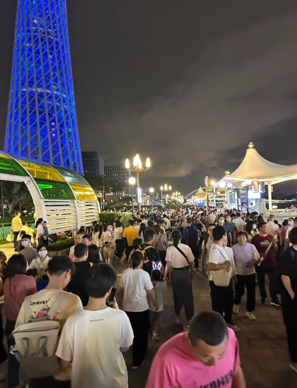 广州塔,我就经过广州塔,去的时候还正常,回来就直接不让进了,这个地铁站直接停了,图三全员大迁徙去下一个地铁站