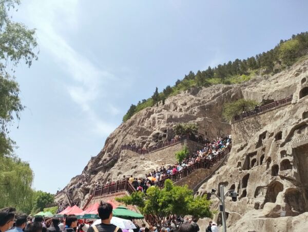 河南洛阳龙门石窟游客爆棚,五一假第一天,龙门石窟人挤人,不是去看佛像的,是去看人的
