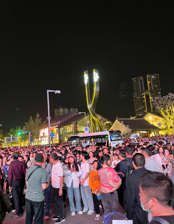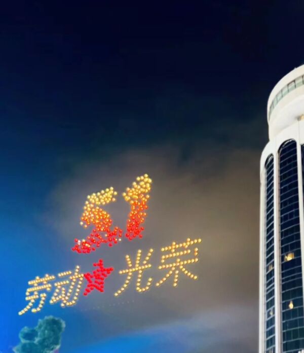 是因为昨晚8点30分屏步行街上演空中600架无人机编队飞行表演