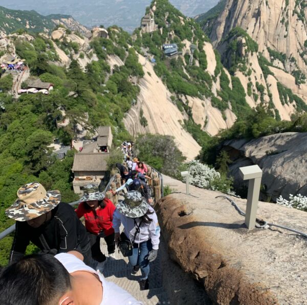 白天的华山,排队进山,真的真的别来华山了,五一假期来华山真的人挤人,楼梯有的很陡,缆车排队的太多了,北峰上车,排队两小时,坐车八分钟,但风景还是蛮不错的。