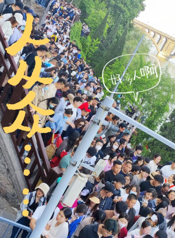 大雁塔附近的过街天桥,别慌小场面,这只是排队坐地铁的人