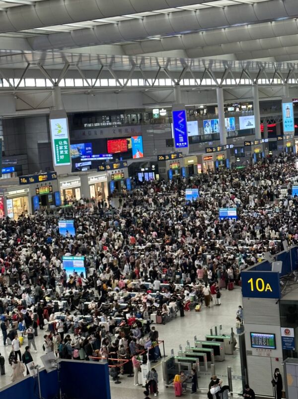这是南京站,人山人海,建议乘火车的朋友们至少提前30分钟到达火车站(一般来说北进站口人相对比南进站口少,但目前来看似乎南进站口人更少一点)