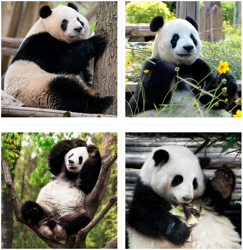 答案是图二和图三。图一和图四的熊猫是奇一、和花,生活在成都大熊猫繁育研究基地;图二是飞云,生活在大连森林动物园;图三是“西直门三太子”萌兰,生活在北京动物园。熊猫喜欢安静的环境,参观时不要大声喧哗,不要投掷、喂食任何物品。