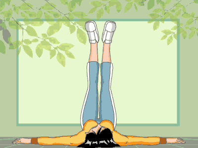 5、身体平躺,双脚并拢,最大幅度左右摇摆。(美腰、美腹)
