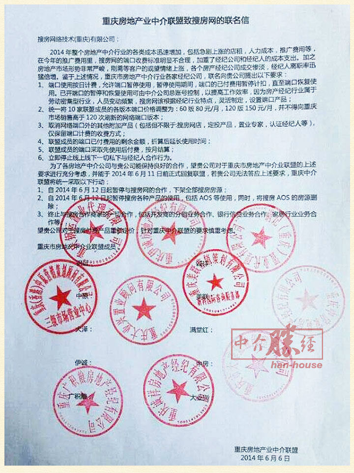 5月28日 重庆中介联盟谈判搜房:中介与电商搜房矛盾地域性扩大