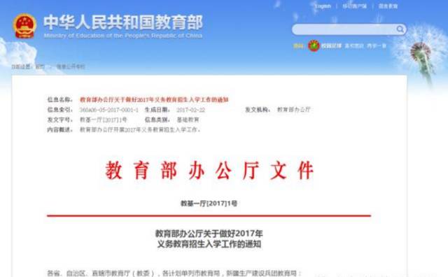 我们先来看看教育部的《关于做好2017年义务教育招生入学工作的通知》说了什么: