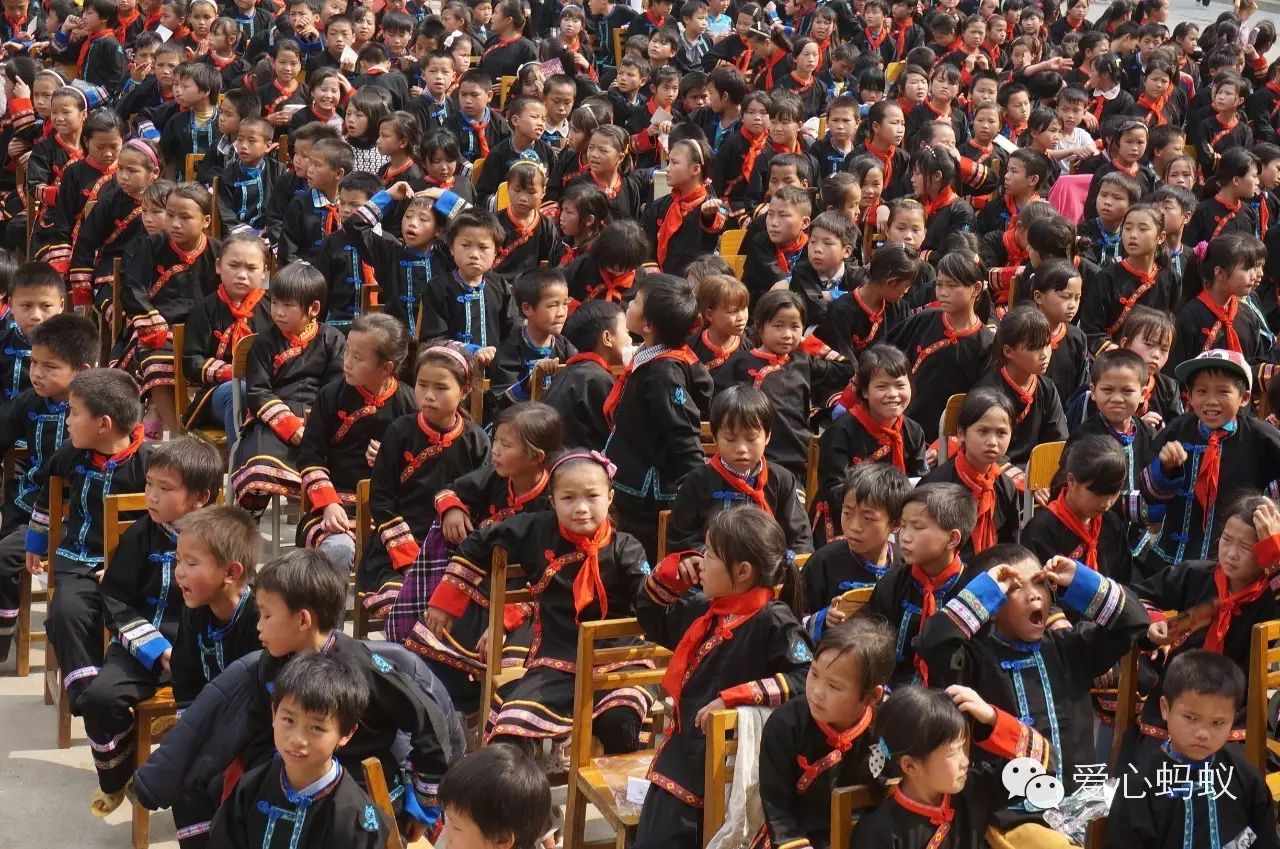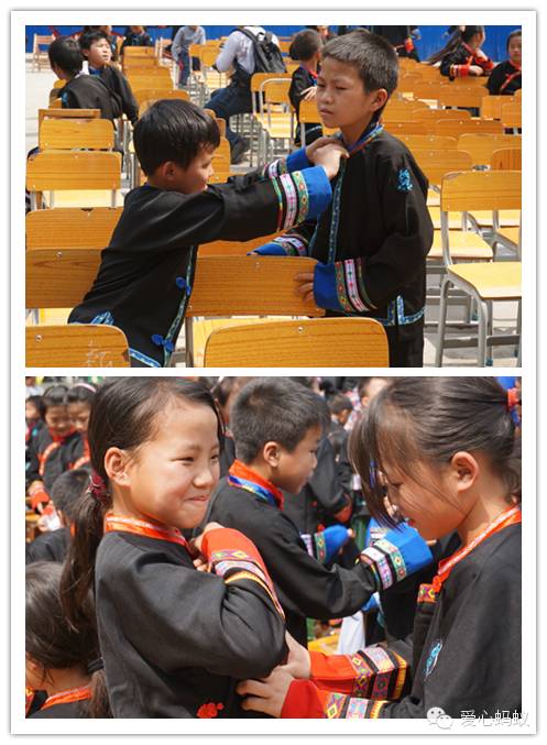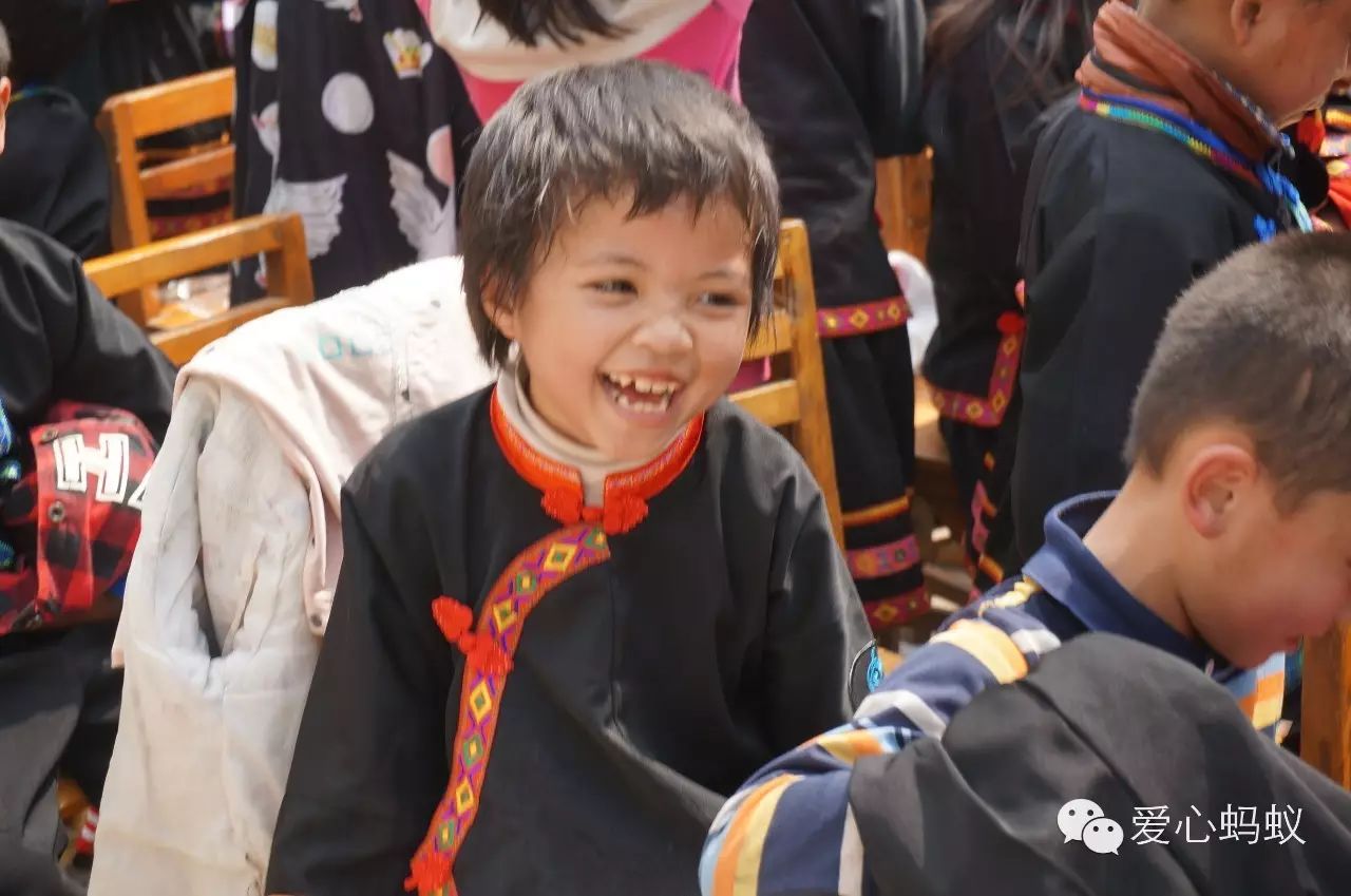 我们的志愿者开心的给孩子们分发校服,协助孩子们穿上漂亮的新校服