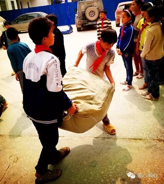 学生们积极的帮忙搬运校服,看着他们小小的身躯,认真的表情,竟然很感动