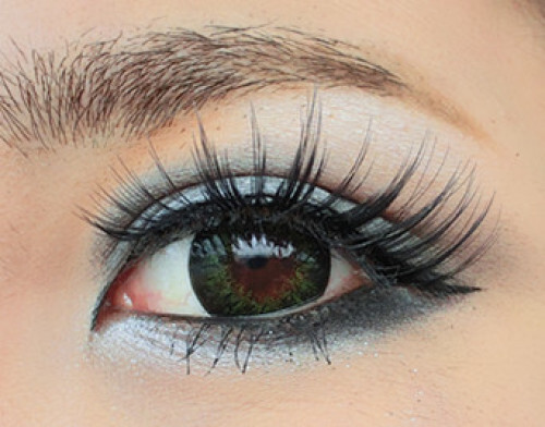 用黑色眼影画在眼折范围并向上晕染,和下眼线范围,眼尾加重,可以让眼睛看起来更大。