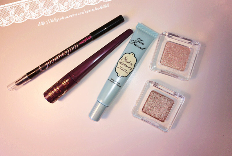 先用中间的TOO FACED的眼部打底做全眼部打底,可以增加眼影的持久度防止晕妆。